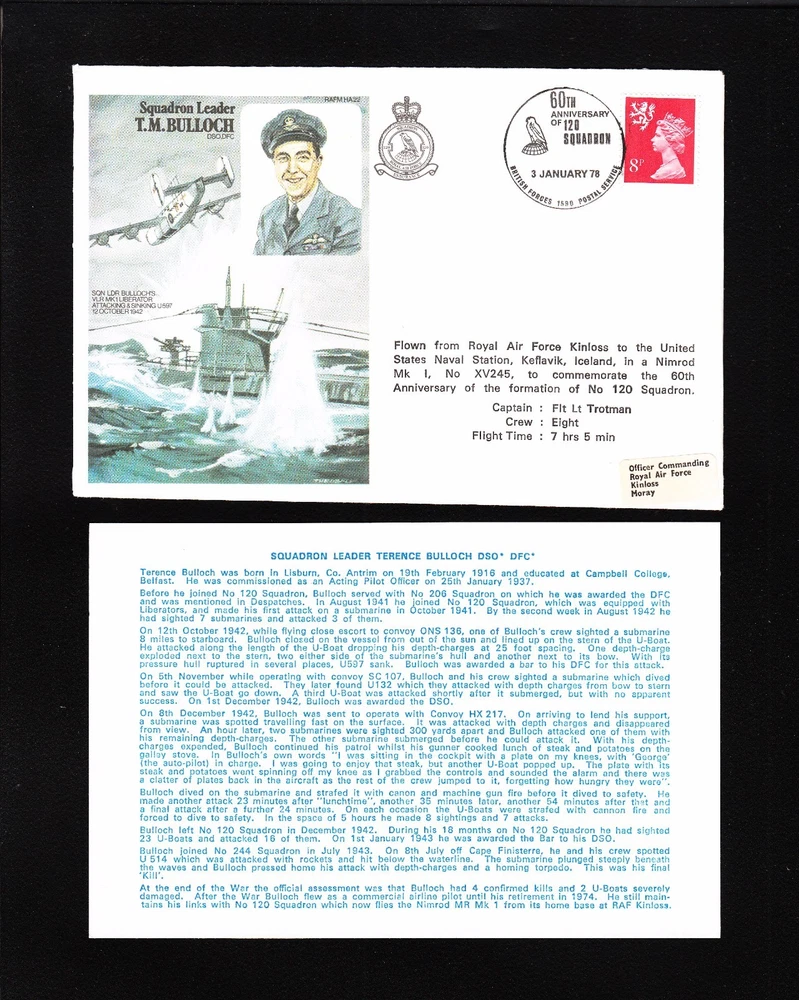 Great Britain Flown Cover WWII RAF TM Bulloch Sinks U597 1978 & Insert (