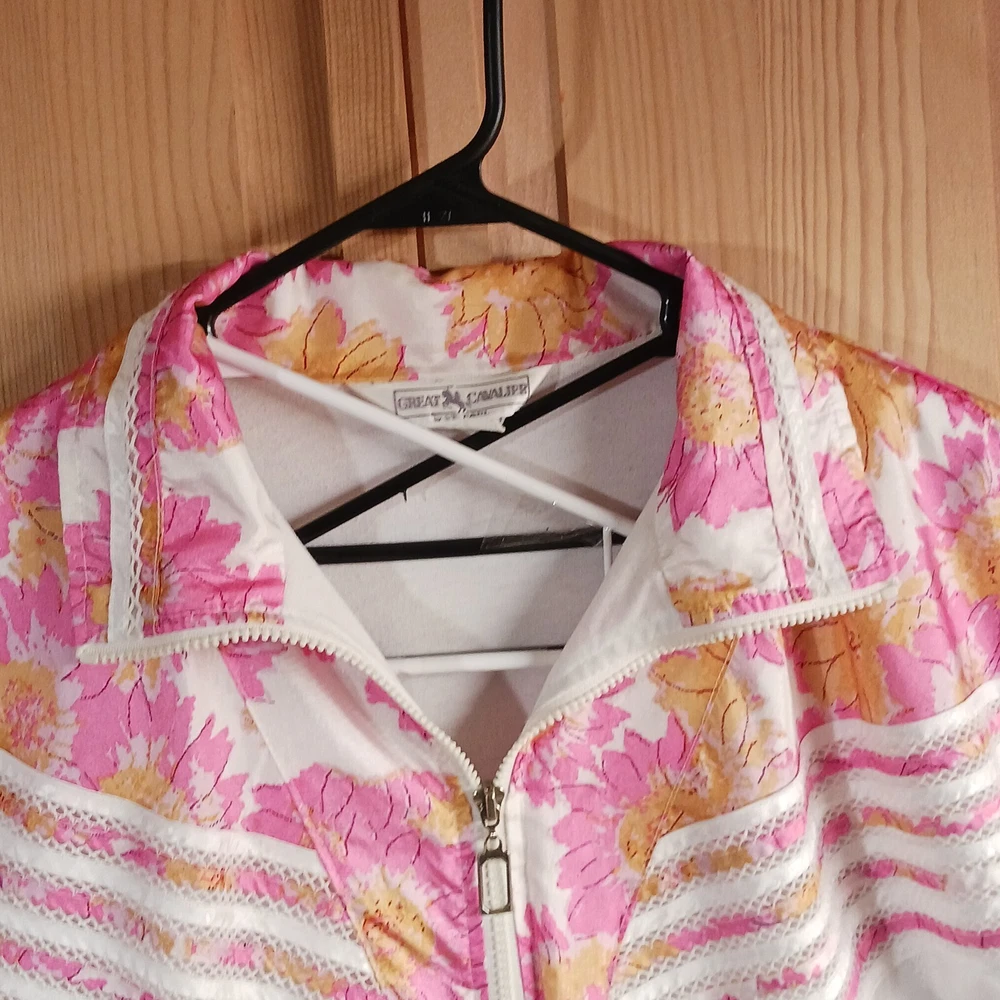 Great Cavalier Windbreaker Jacket Pink Floral Women's Vintage Full Zip Size XL
