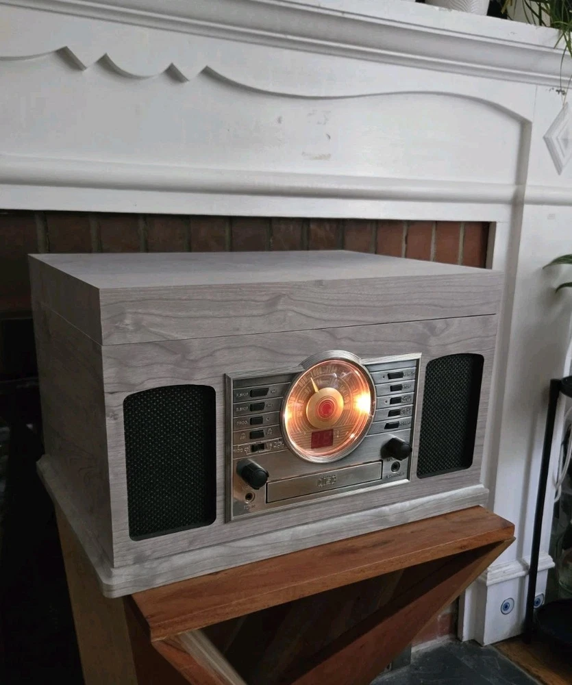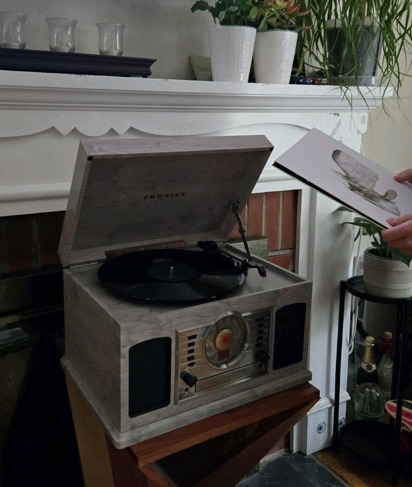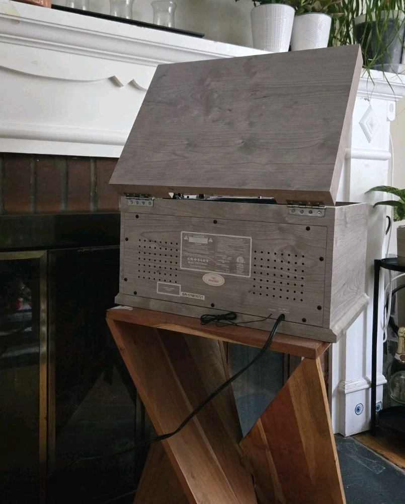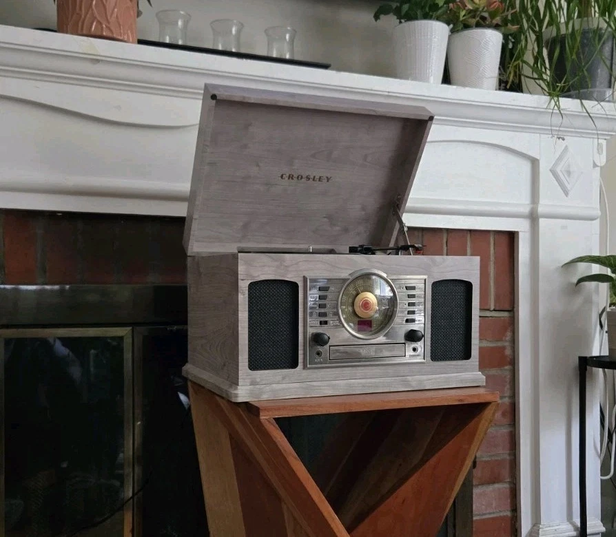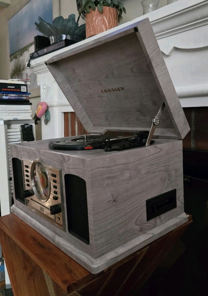 Great condition, 'like new' record player with versatile features, and a vintage aesthetic. All functions are working excellent, and there are no visible scratches or marks. The Crosley McQueen 8-in-1 is a versatile home audio component that combines a record player, CD player, cassette player, Bluetooth connectivity, and AM/FM radio all in one compact unit. With speed settings for both 45RPM and 33.3RPM, this 1st generation Crosley product provides a convenient and stylish solution for enjoying your favorite music in multiple formats.