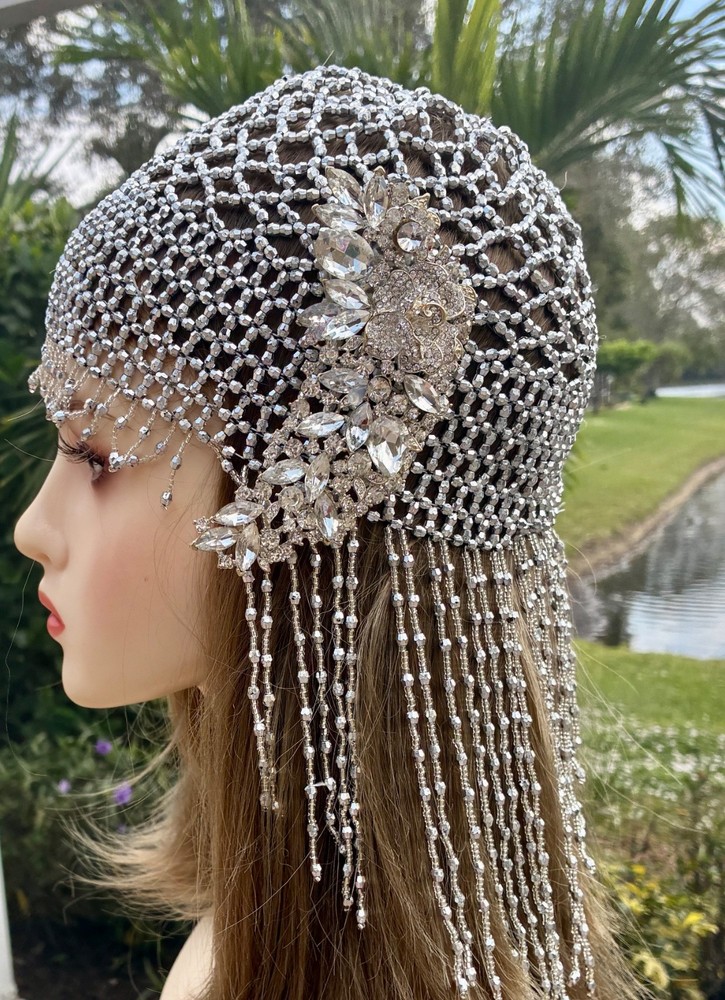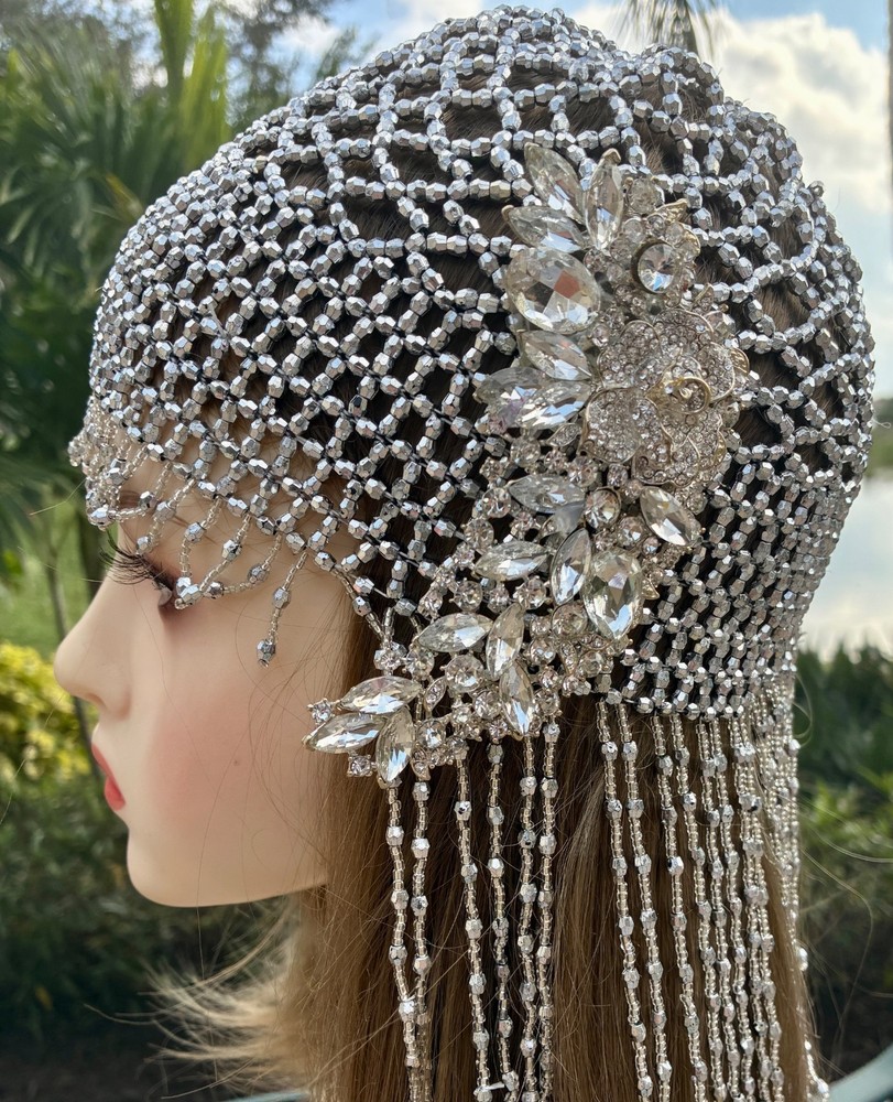This 1920s-inspired cloche hat is the perfect accessory for a flapper-style ensemble. The silver color and design givse off an Art Deco vibe, adding a touch of sophistication to any outfit. Made for women, this one-size-fits-all hat is a timeless piece that embodies the glamour and style of the Jazz Age. Perfect for a night out at the speakeasy or a Gatsby-themed event, this hat is sure to make a statement.