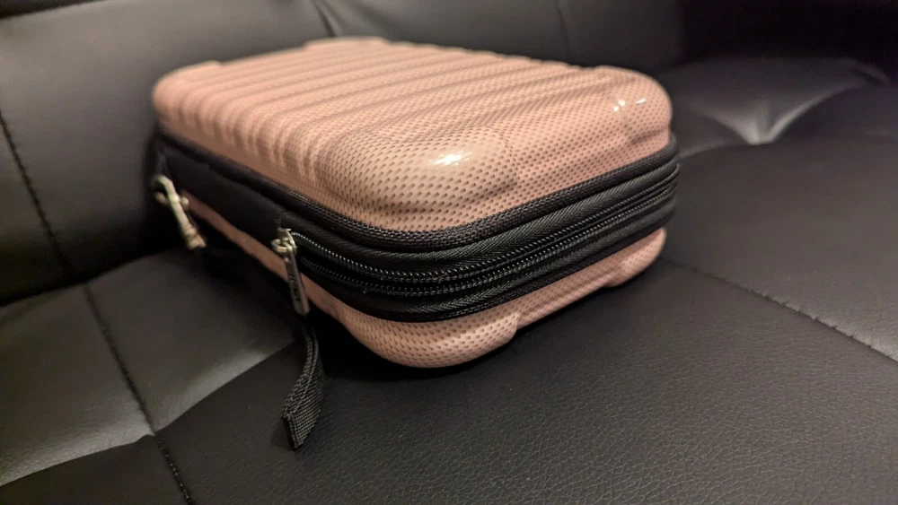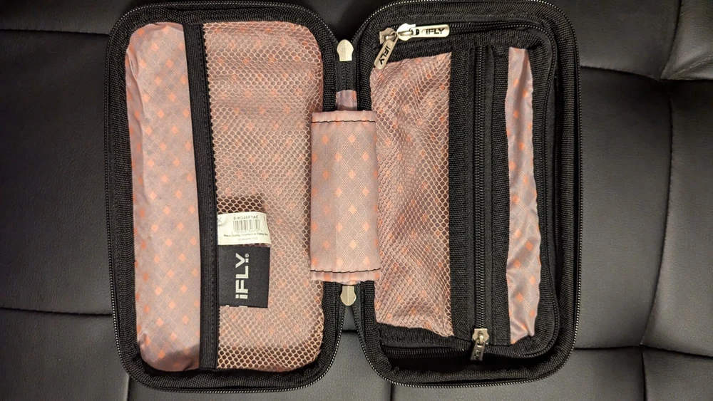 This iFLY Zip Around Hard Case is the perfect accessory for keeping your makeup, phone, and other small items organized while on the go. The pale pink color and hardcase feature a stylish and durable design. With a size of 9x6, this case is perfect for storing your essentials without taking up too much space in your luggage. The iFLY brand is known for their quality products, and this toiletry kit is no exception. It is ideal for travel and can easily be packed in your luggage or carried on as a carry-on item. The kit comes with a variety of compartments to store your makeup, phone, and other small items, making it a must-have for anyone who likes to keep their belongings organized.