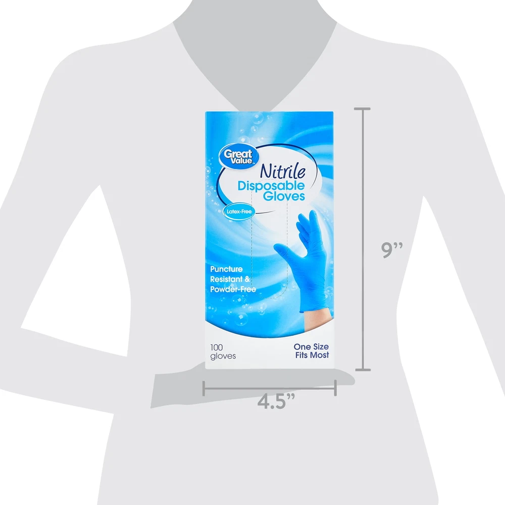 When considering single-use gloves for your household chores, select the strength, grip, and comfort of Nitrile Disposable Gloves. Each pack contains 100 versatile gloves that are sized to fit most hands. They are puncture resistant, powder free, and ready to protect your hard-working hands during tasks that involve cleaning, baby care, painting, cooking, first aid, pet care, and more. These latex-free gloves feature a lightly textured grip, which makes it easier to complete everyday tasks. For hand protection you can count on, choose Nitrile Disposable Gloves. products provide families with affordable, high quality grocery and household consumable options. With our wide range of product categories spanning grocery and household consumables, we offer you a variety of products for your family's needs. Our products are conveniently available online and in stores nationwide, allowing you to stock up and save money at the same time. These latex-free gloves feature a lightly textured grip, which makes it easier to complete everyday tasks For hand protection you can count on, choose Nitrile Disposable Gloves products provide families with affordable, high quality grocery and household consumable options