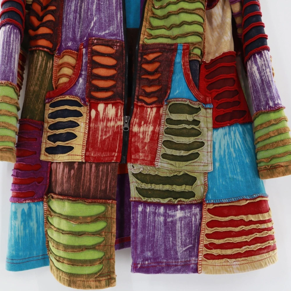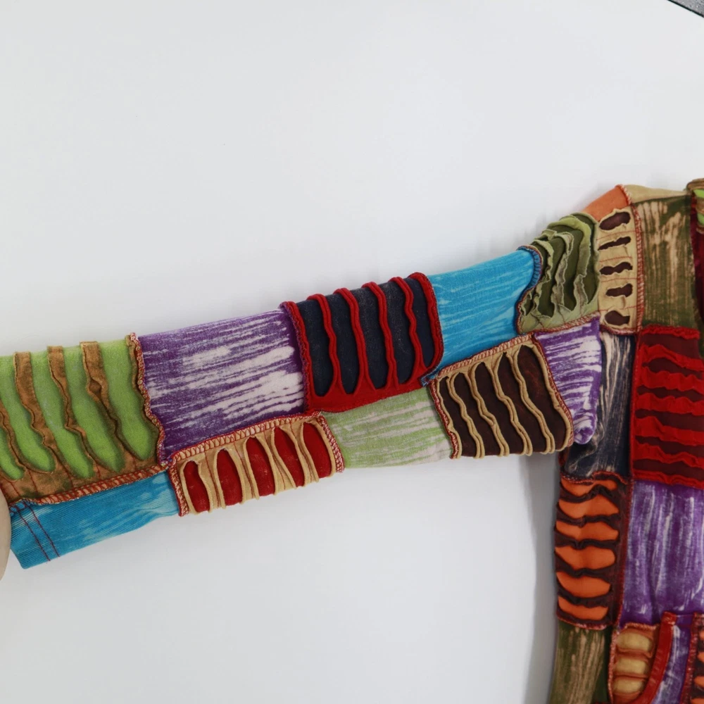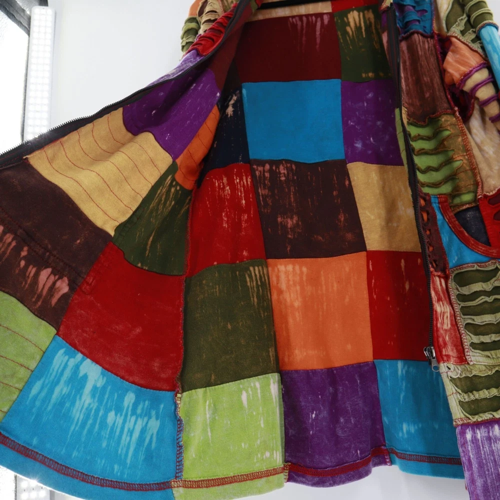 Greater Good Network Patchwork Jacket Womens S/M Hippie Coachella Festival Fall If you ever wanted to look like a walking quilt from the future, this is your moment. This patchwork masterpiece screams "I'm fun, funky, and ready to festival!" With its vibrant colors, it's like wearing a rainbow to Coachella without the unicorn. • Patchwork design • Full-length zipper • Two front pockets • Hooded style • Mid length • 100% cotton material Features: hippie, festival, outerwear, patchwork, tribal, coachella, burningman Size: Womens M Condition: Pre-Owned Good