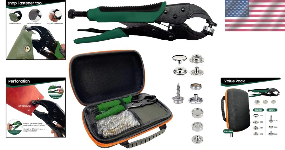 Effortless Snap Installation Tool with Punch and Magnetic Design - Green 15mm ‹ › ‹ › ‹ › ‹ › ‹ › ‹ › ‹ › ‹ › Effortless Snap Installation Tool with Punch and Magnetic Design - Green 15mm Transform the way you approach snap installations with our innovative repair kit, designed for those who demand efficiency, safety, and ease. This expertly crafted tool will become an essential part of your toolkit, providing a seamless experience for all your snap-related projects. Features: Easier, Safer, More Efficient: A revolutionary snap fastener tool that simplifies the installation process, making it user-friendly for everyone. Multiple Functions: Equipped with a unique punching function to create clean, precise holes for your metal snaps, and fortified with a magnetic suction design for effortless installation. Durable and Rust-Resistant: Constructed from premium alloy steel, ensuring longevity and resilience against rust and corrosion for years of reliable use. Adjustable Tail Bolt: Easily adapt to various material thicknesses such as canvas, boat covers, leather, and fabric for a perfect fit each time. Great Value: Includes 40 sets of snap components, making it an ideal choice for frequent installations and DIY projects. Benefits: Save time and frustration with an effortless installation process. Achieve professional-quality results in the comfort of your home or workshop. Versatile tool perfect for a wide range of materials and applications. Invest in a durable tool that minimizes the need for additional purchases. Why Choose Our Snap Fastener Tool? Revolutionize your crafting and repair projects with our Efficient Snap Installation Tool. Say goodbye to traditional struggles and welcome a smoother, safer method for securing snaps. Ideal for both novices and experienced crafters, this tool offers the versatility and reliability you need for any project. With its integrated magnetic features and adjustable tail bolt, you can enjoy absolute precision every time. Make the smart choice - elevate your craft and efficiency with our Snap Fastener Tool today! Shipping Free & Fast Shipping - We offer free shipping to most of the USA with a normal delivery time of 3-10 businessdays. However, due to various situations, additional delivery time (up to 3 weeks) may be required for some items. Alternative Carriers - We may use alternative carriers (e.g. USPS, FedEx, UPS, etc.) to ensure your package arrives safely and on time. Due to the use of multiple carriers, we are unable to provide a tracking number automatically. Handling Time - Orders are processed and shipped within 1-5 business days of receiving cleared payment. Shipping Restrictions - Shipping to Alaska, Hawaii, Puerto Rico, Guam, and other US territories may incur shipping charges or delivery restrictions. Please contact us before ordering, or your order can be refunded/cancelled. State Restrictions - There may be restrictions based on your state of purchase. For example, certain items may not be shipped to California due to state regulations. Contact for Tracking Updates - If you require tracking updates or have any concerns about the delivery of your order, please feel free to contact us, and we will be happy to assist you. Return Please see our ebay return policy. We do not accept return on most products. This is to avoid customers mis-using ebay returns. All sales are final. Please be sure to check the return policy listed at the top of the listing. In rare cases, we may accept returns, if the buyer pays both ways shipping and 20% restocking fee. If you are un-sure of return policy of a particular item, please ask before buying. Payment We accept all major credit cards, PayPal, and Apple Pay for your convenience. Your payment information is secure and encrypted to ensure a safe and seamless transaction. Please complete your payment within 3 days of purchase to avoid any delays in shipping. Feedback Your feedback is extremely important to us. We strive to provide the best products and customer service possible. If you are satisfied with your purchase, please take a moment to leave us a positive review. If you have any concerns or issues with your order, please contact us before leaving negative feedback. We are committed to resolving any problems and ensuring your satisfaction. Contact Us If you have any questions or concerns, please feel free to reach out to our customer support team. You can contact us through the eBay messaging system. We are available Monday to Friday, 9:00 am to 5:00 pm EST, and we will do our best to respond to your inquiry within 24 hours. Buy it now and enjoy a pleasant shopping experience! UPC: Not Set MPN: Not Set Unit Quantity: 1 Suitable For: Blazers & Suits,Costumes,Crafts,Drapery,Jackets & Coats,Shirts & Blouses,Upholstery Color: Green Material: Metal Type: Snap Buttons Brand: Unbranded Shape: Round Unit of Sale: Pack Country/Region of Manufacture: Not Set Unit Type: Unit