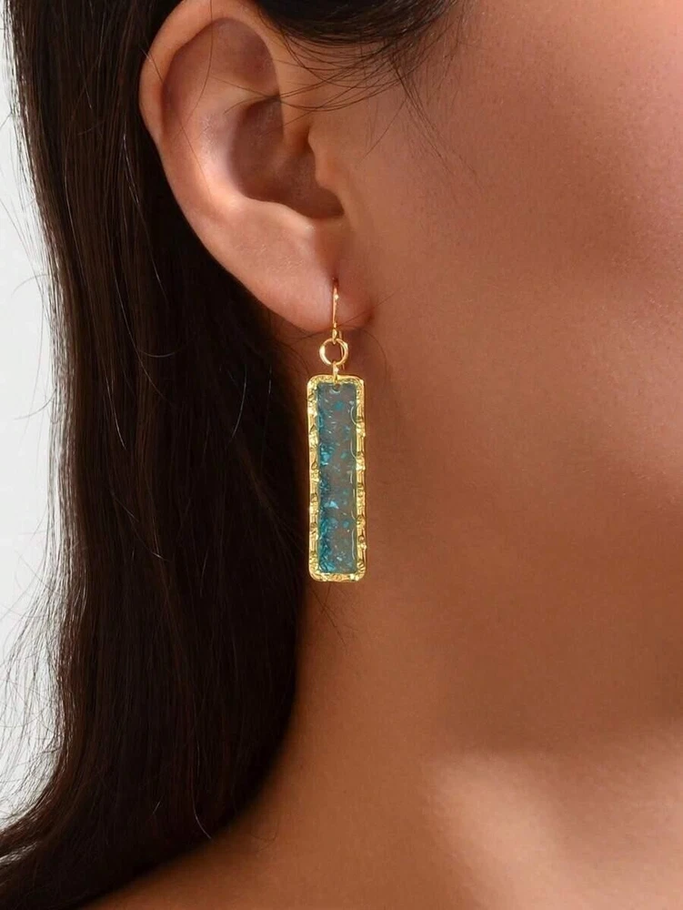 1 Pair Geometric Green Acrylic Rectangle Dangle Earrings For Women Trendy Party Daily Jewelry