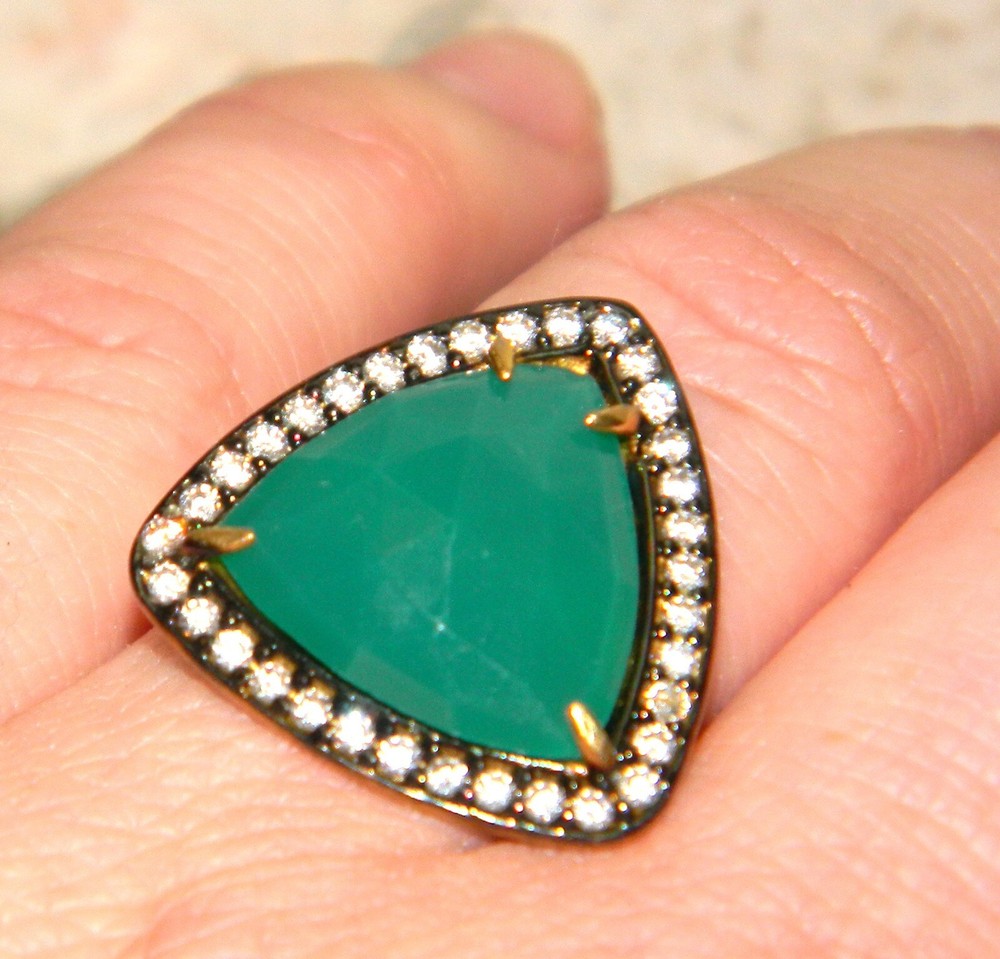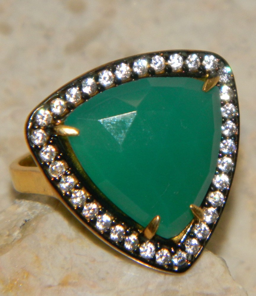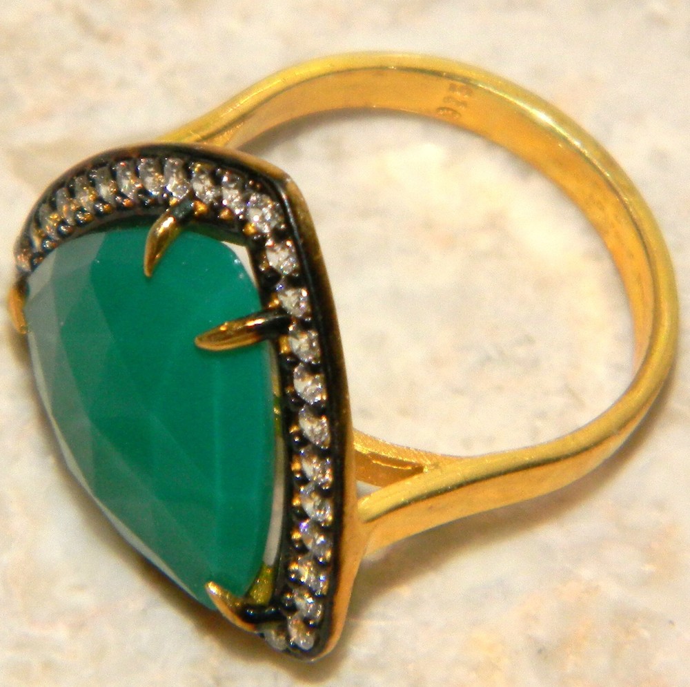 Item Type: Ring Weight: 7 g Size: 8 1/4 Material: Sterling Silver PLATED WITH GOLD Main stone: Agate Other stones: white topaz Dimension: 7/8 BY 7/8 inch Condition: New Main color: green