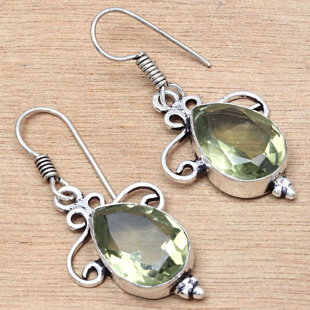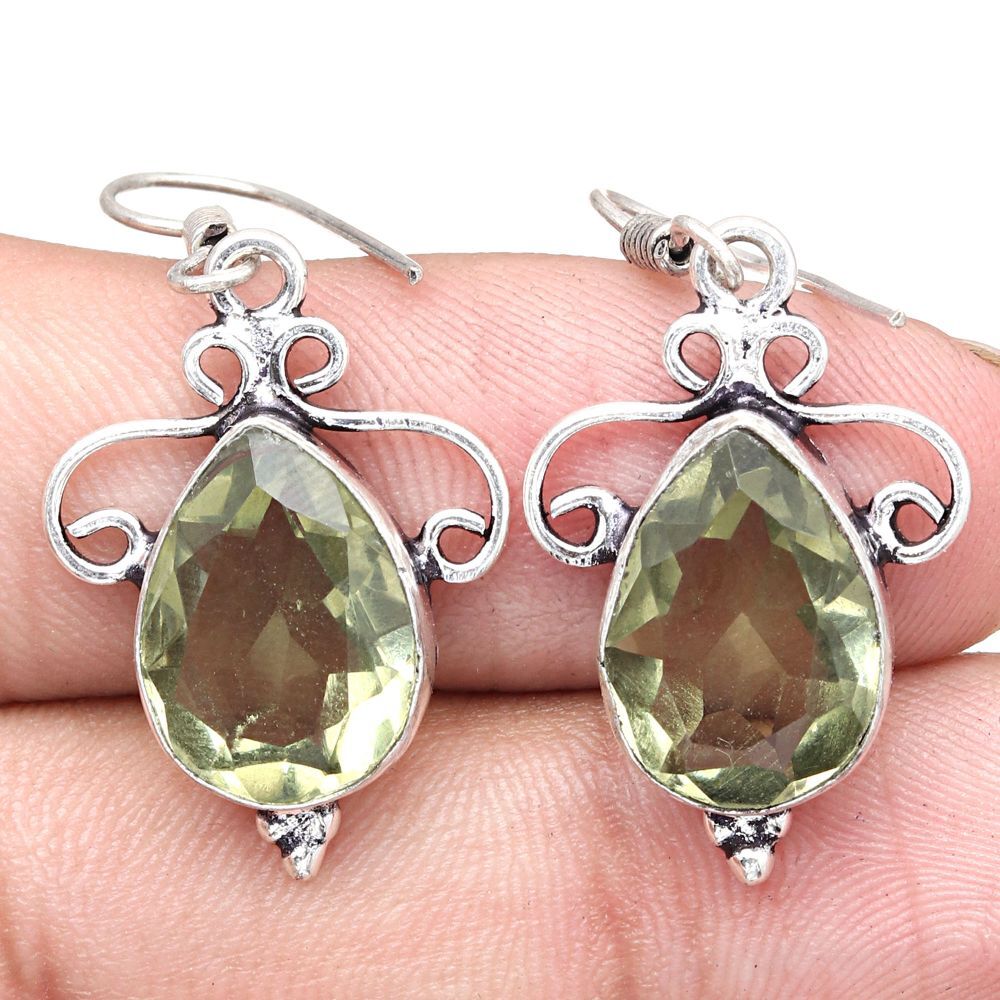 Green Amethyst Gemstone Handmade Gift For Her Silver Jewelry Earrings 1.5"