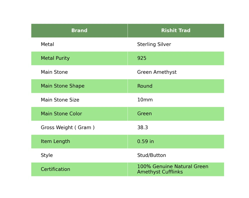 Complete your look for a glamorous evening in this gorgeous Sterling Silver Cufflinks studded with Green Amethyst. This will go well with all of your dresses and are attention seeking. ---------------------------------------------------- ------------ Welcome to Our Shop Rishittrad ---------------------------------------------------- ------------ Description:- SKU :- CL-3-15 Metal :- Sterling Silver Metal Purity :- 925 Gemstone :- Green Amethyst Gemstone Color :- Green Gemstone Shape :- Round Gemstone Origin :- Setting :- Channel-Set Cufflink Lenght : - 0.59 Inches ---------------------------------------------------- ------------ -------- ------------ Elegant Birthday Tribute:- Discover the essence of sophistication with our Birthday Radiance collection. Crafted with exquisite attention to detail, each piece embodies the timeless elegance and symbolic significance of birthdays. Craftsmanship Excellence:- Meticulously fashioned from premium 925 sterling silver, our jewelry pieces boast a classic and enduring design. The rich tones of natural gemstones complement the silver setting, creating a captivating harmony that resonates with wisdom and truth. Symbol of Personal Growth:- Gift with intention and meaning. Our Emblem of Wisdom pieces symbolize heartfelt wishes for personal growth and enlightenment on the recipient's special day, making it a cherished gesture of love and appreciation. Versatile Elegance:- Measuring at 1.2 inches, our creations seamlessly blend into any ensemble, offering both daily wearability and the ability to elevate sophisticated looks for special occasions. Their adaptable design ensures they become treasured additions to any jewelry collection. Thoughtful Expression of Love:- Surprise your beloved with a gift that transcends mere adornment. Our Natural Gemstone 925 Sterling Silver collection is a stylish and thoughtful token, exuding elegance and emotion while conveying warmest wishes with enduring grace. Exquisite Presentation:- Delight in the joy of gifting with our meticulously presented pieces, elegantly housed in an exquisite gift box. Make their birthday truly memorable by presenting them with a gift that captures the allure and timeless elegance of sterling silver. -------------------------- Image Policy----------------------------- All images are captured in natural lighting. The product showcased is the exact item you'll receive. -------------------------- Delivery Policy-------------------------- Standard Shipping typically takes 15-25 days, depending on your location. For expedited shipping, additional charges will apply. --------------------------- Product Policy--------------------------- You will receive the exact product depicted in the photos. All items are meticulously handcrafted. ------------------------------ Order Policy------------------------------ We welcome orders from around the globe. Custom orders are also accepted. Bulk orders are available upon request. Should you have any queries about our products, please don't hesitate to reach out. Upon receiving your product, we'd appreciate your feedback. ⋆⋆✦✧✦⋆⋆⋆⋆✦✧✦⋆⋆⋆⋆✦✧✦⋆⋆⋆⋆✦✧✦⋆⋆⋆⋆✦✧✦⋆⋆⋆⋆✦✧✦⋆⋆⋆⋆✦✧✦⋆⋆ "Discover a captivating collection of handcrafted gemstone jewelry at our boutique." https://www.ebay.com/str/rishittrad0 ♥ Thank you for choosing us ♥
