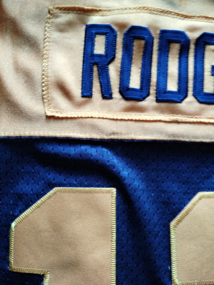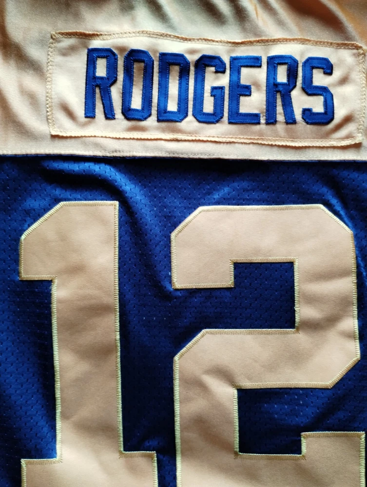 Green Bay Packers Aaron Rodgers #12 NFL Nike Navy 100th Season Throwback Jersey. Condition is Used. Shipped with USPS Ground Advantage.