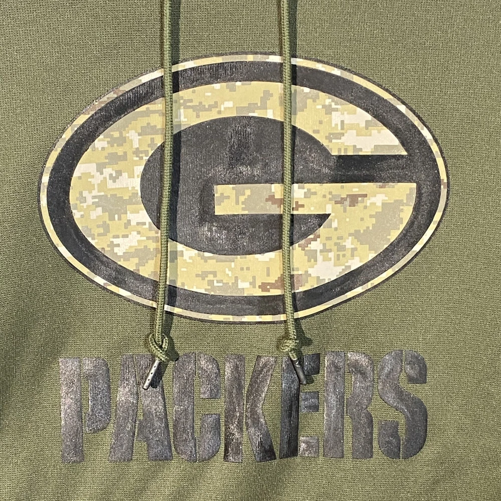 Show your support for the Green Bay Packers and salute the service of our brave soldiers with this Nike Therma-fit hoodie. Made with windproof, thermal-insulated, and water-resistant materials, it's perfect for any outdoor activity. The Real Tree pattern gives it a unique look, while the 3-D clothing feature ensures a comfortable and snug fit. This unisex adult hoodie comes in size small and is made of polyester. Celebrate your team and our military with this stylish and functional piece of clothing.