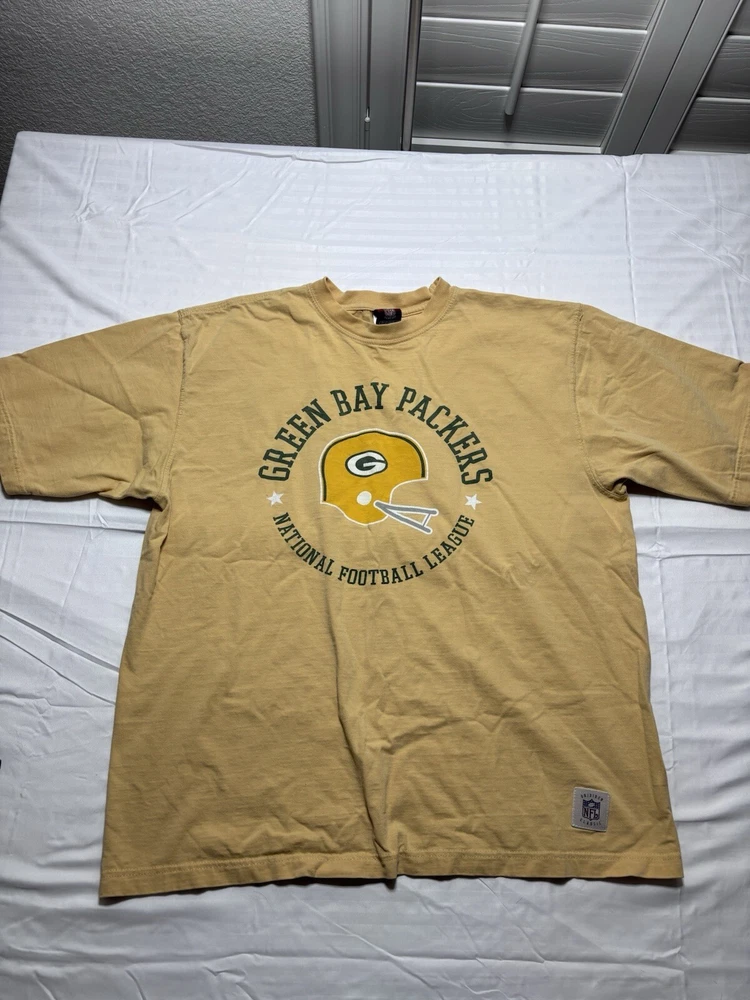 Reebok Green Bay Packers Shirt Adult Large Yellow Graphic Logo NFL Football Sports Mens gridiron classic. Pre owned shipped with usps ground advantage.