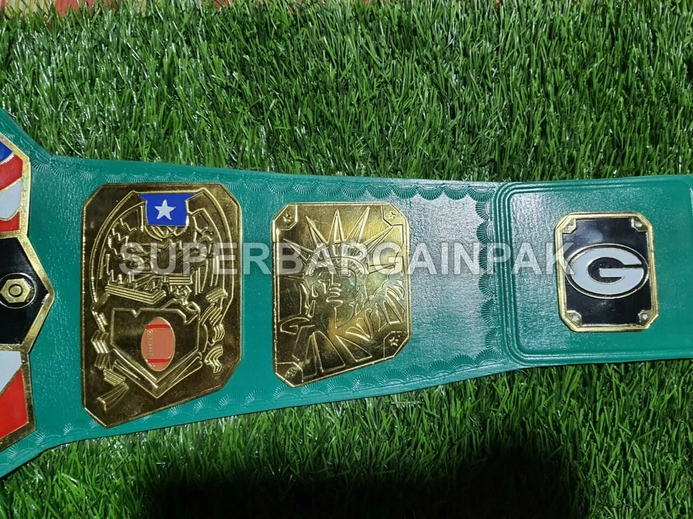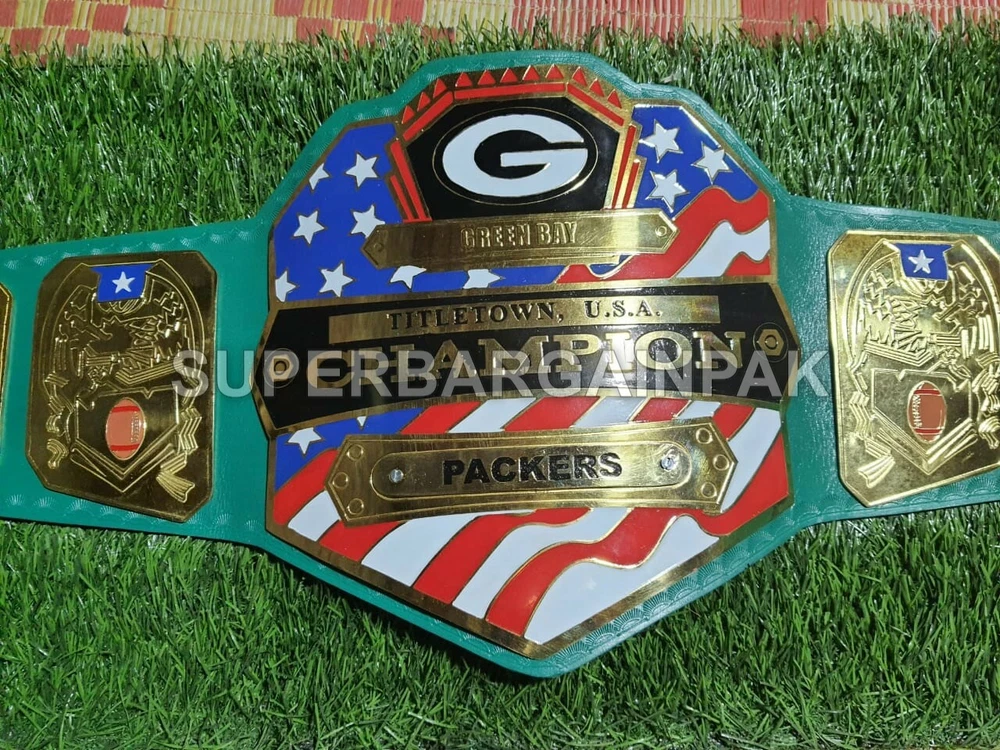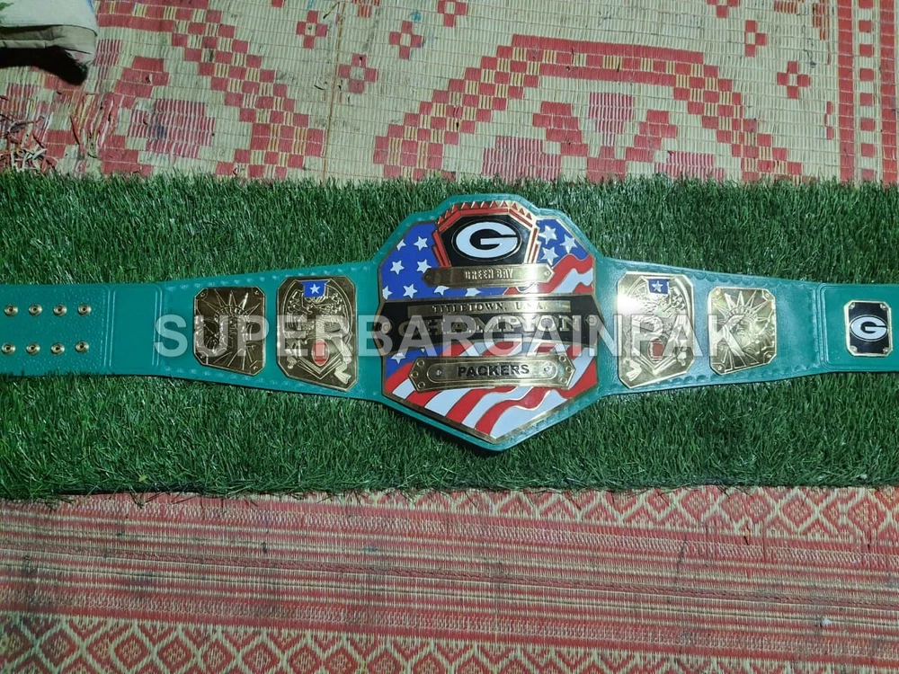 Welcome to our shop ------------------------------------------- We are specialist in manufacturing handmade products:: Our wide range of products include: >>>>Championship Belts WWE | WWF | AEW | UFC | WBC | WCW Product Description ** Green Bay Packers championship belt *** Plate Metal: Brass (Zinc available on request with additional cost) Strap: 100% Leather Largest Waist Size: Fits upto 46'' Belt Length: ~50" Weight: 4.17 lbs | 2.01 Kg Plate Thickness: 2mm (4mm Version available on demand with additional cost) ::The belt is well crafted and manufactured to meet the quality demands of fans:: Get your hands on this marvelous piece now! Note: If you need further details kindly inbox us, we will try to be as responsive as possible. ------------------------------------------- Return Policy: Generally we don't have much complains on our products and we make sure to 100% satisfy our clients. We send the product in well Bubble Wrapped packaging so there is highly unlike chance of getting damaged item. In case there is a damage, we will try to give partial refund or you can ask for full refund within 30 days after returning the belt to origin. NOTE: 1. If you have placed the order by mistake or you have purchased a wrong item then we are not going to refund that. 2. Buyer will pay the shipping fee of returning the belt. ------------------------------------------- Happy Shopping! :)