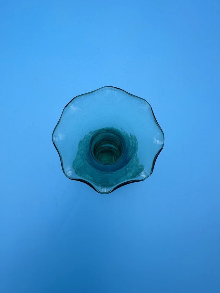 Green Art Glass Hand blown Crackled Ruffled Vase Bowl