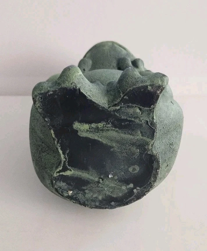 The product is a small green frog-shaped garden gnome made of resin or ceramic. It is suitable for indoor and outdoor use, featuring a modern style and weatherproof design. This cute ornament can be placed in a porch, flower bed, or lawn to add a touch of charm to the garden or home decor.