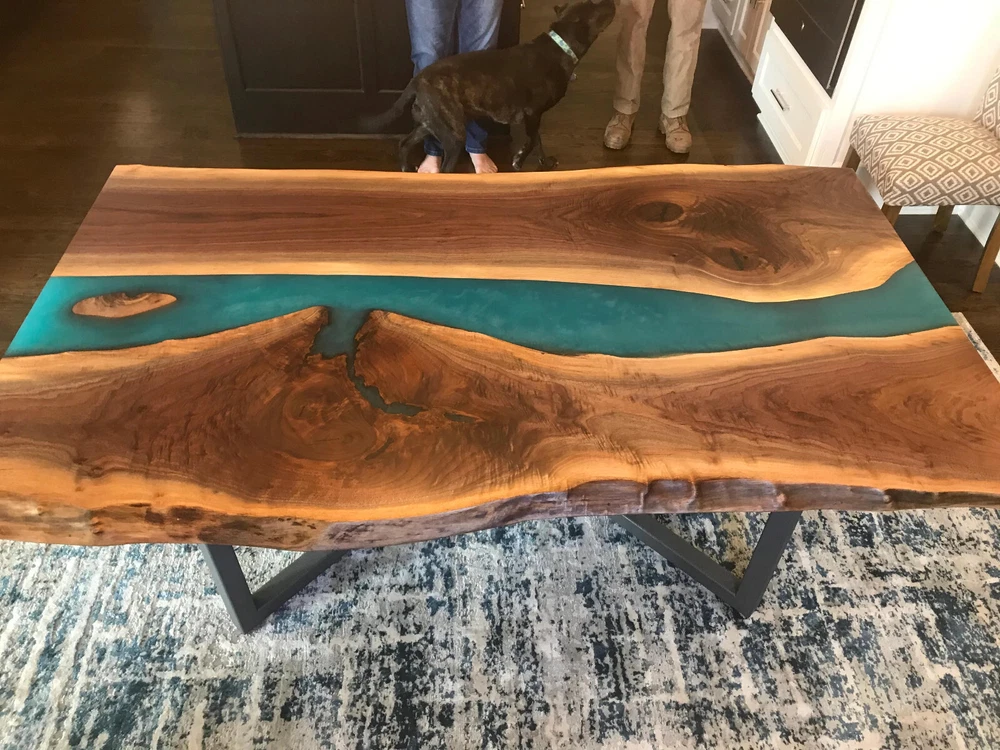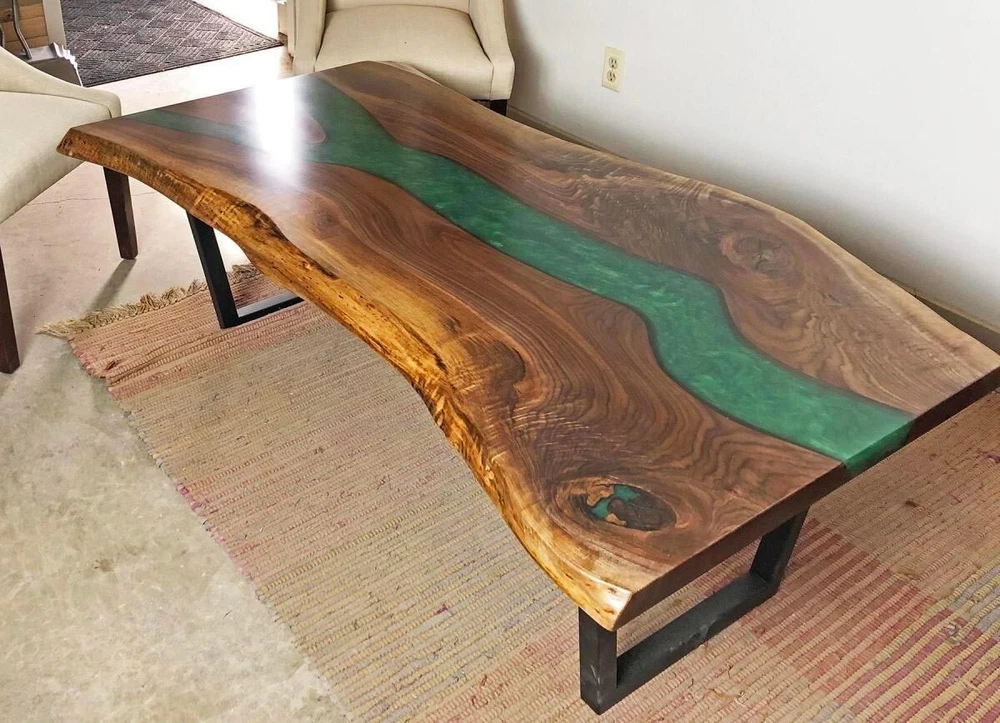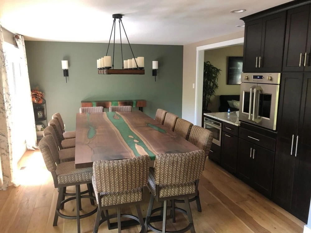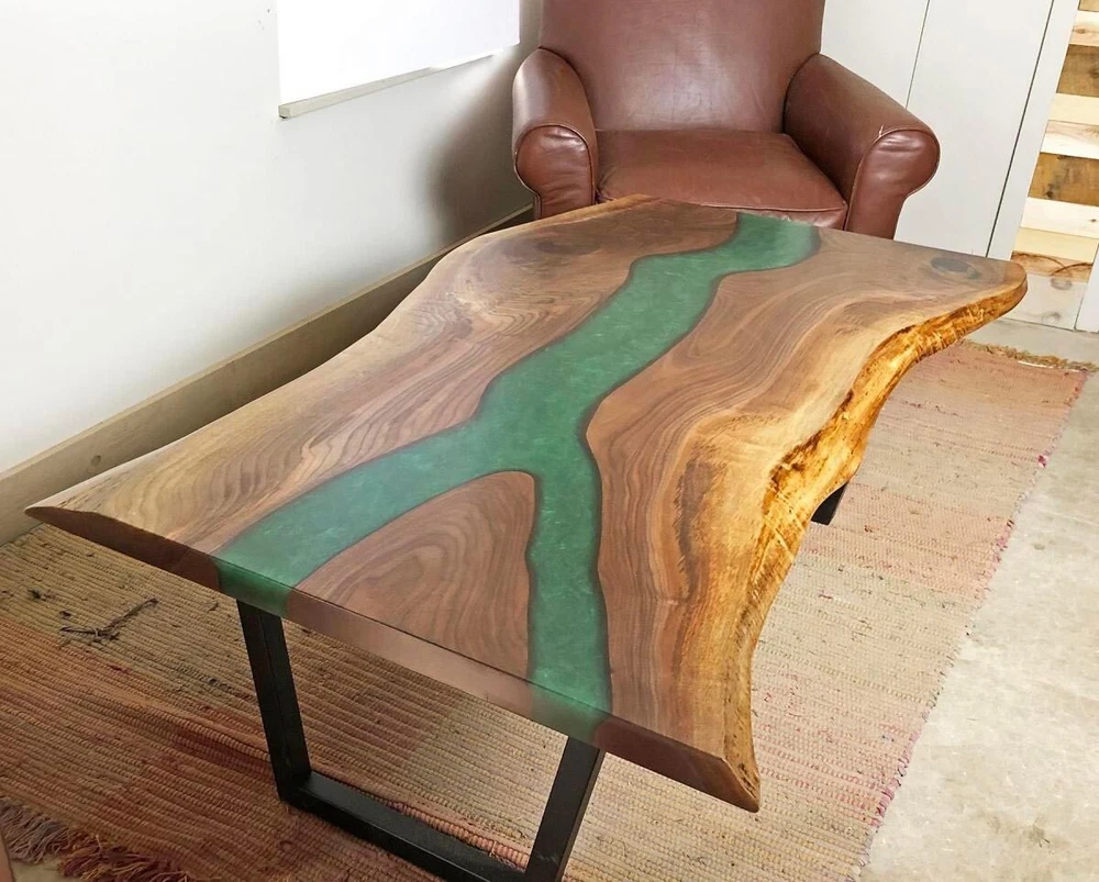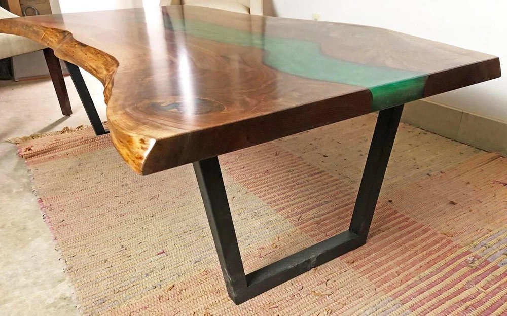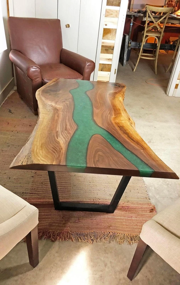 Green Epoxy Dining Table, Wooden Live Edge Custom Furniture Table, Patio Decor