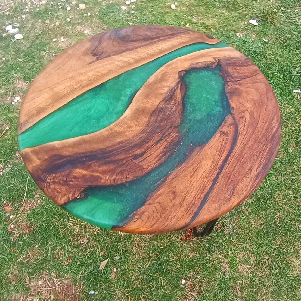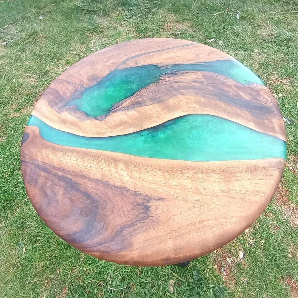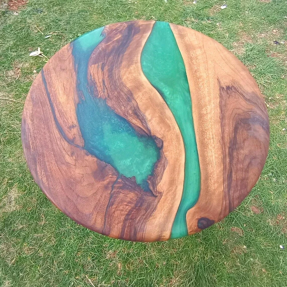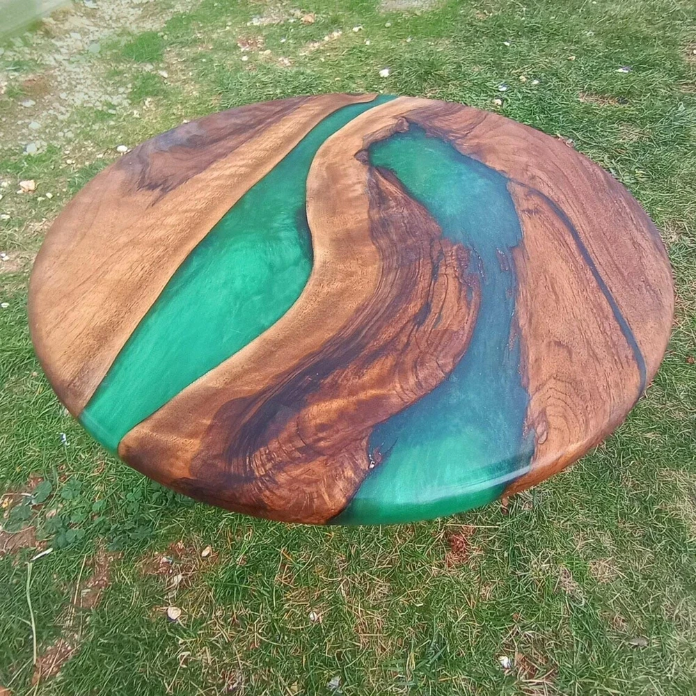 Green Epoxy Round Table Top Handmade Wooden Furniture For Home Decor