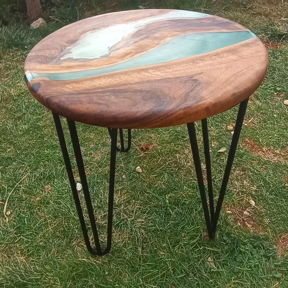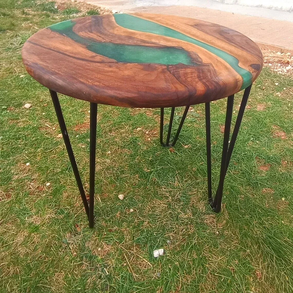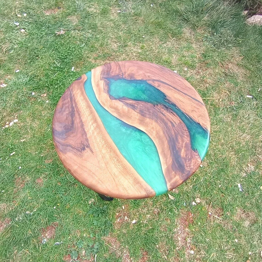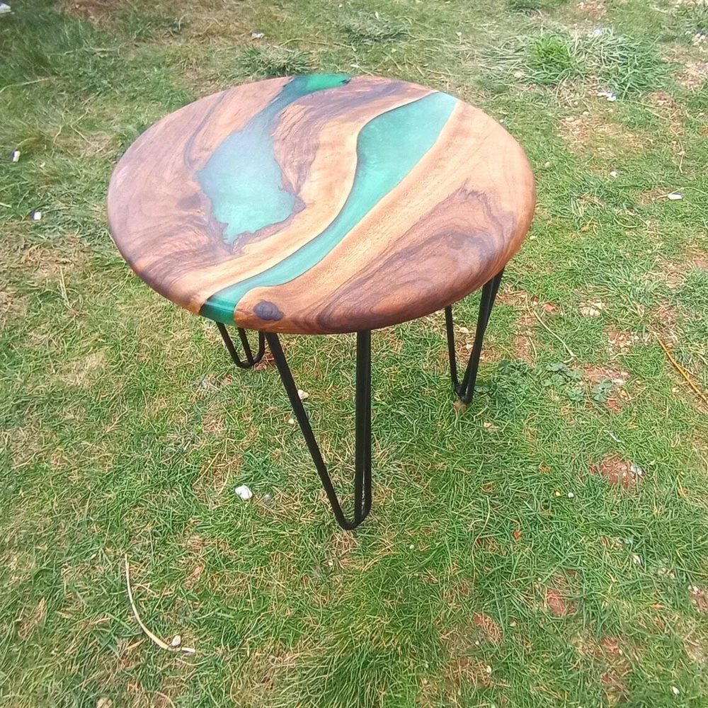 Green Epoxy Round Table Top Handmade Wooden Furniture For Home Decor