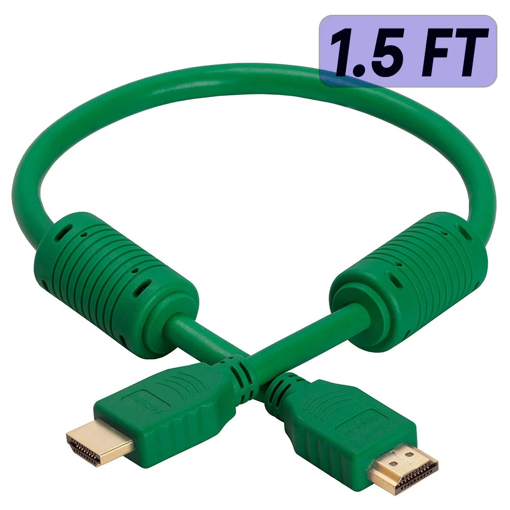 gtin13: Does not apply Brand: Cmple Compatible Product: AV Receivers, Streaming Devices, Blu-ray Players, Media Players, Warranty: Limited Lifetime Category: Video Cables & Interconnects Twist Type: TV Monitor HDMI Cable Height: 10.2Gbps data throughput Connector Type: HDMI Standard Male EAN: high-speed-hdmi-with-ethernet-3d-4k-2.0 Supported Resolution: Guaranteed 4K, 4096p, 2048p, 1440p, 1080p, 1080i, 720p, 480p Resistance: HDMI 2.0 Ready Cable MP Number: Variation-AB-781-782-783-784 Connectors: HDMI 2.0 Item Name: High-Speed HDMI With Ethernet 3D 4K 2.0 Cord Connector A: HDMI 2.0 Conduit: 4K HDMI Type-A Connectors Compatible Brand: 4K TVs, Monitors, Projectors, PCs, Laptops, Home Theater Systems, Gauge: 28 AWG Transfer Rate: 18gbps HDMI Cable Return Policy: 60 Days Money Back Material (Jacket): PVC UPC: Does not apply Jacket: PVC Type: HDMI Cable Other Name: 4k TV HDMI Cable With Ferrite Cores - Green Connector B: HDMI 2.0 Compatible with: HDTV, Gaming Console, Laptop, Monitor, PC, MAC mini, MacBook, and Frequency: HDMI 4k Cable Cord Length: 1.5 FT, 3 FT, 6 FT, and 10 FT Available Color: Green Conductor: 24k Gold-Plated What will you receive: One of 1.5, 3, 6, or 10FT Green HDMI to HDMI Cable Cable Length: 0.46 m, 0.91 m, 1.83 m, 3.05 m Features: Gold Plated Gang: Ultra HD Gaming HDMI Cord