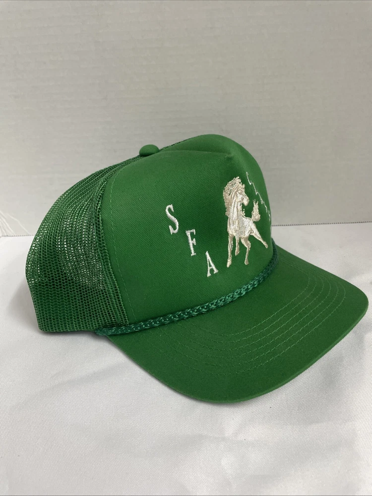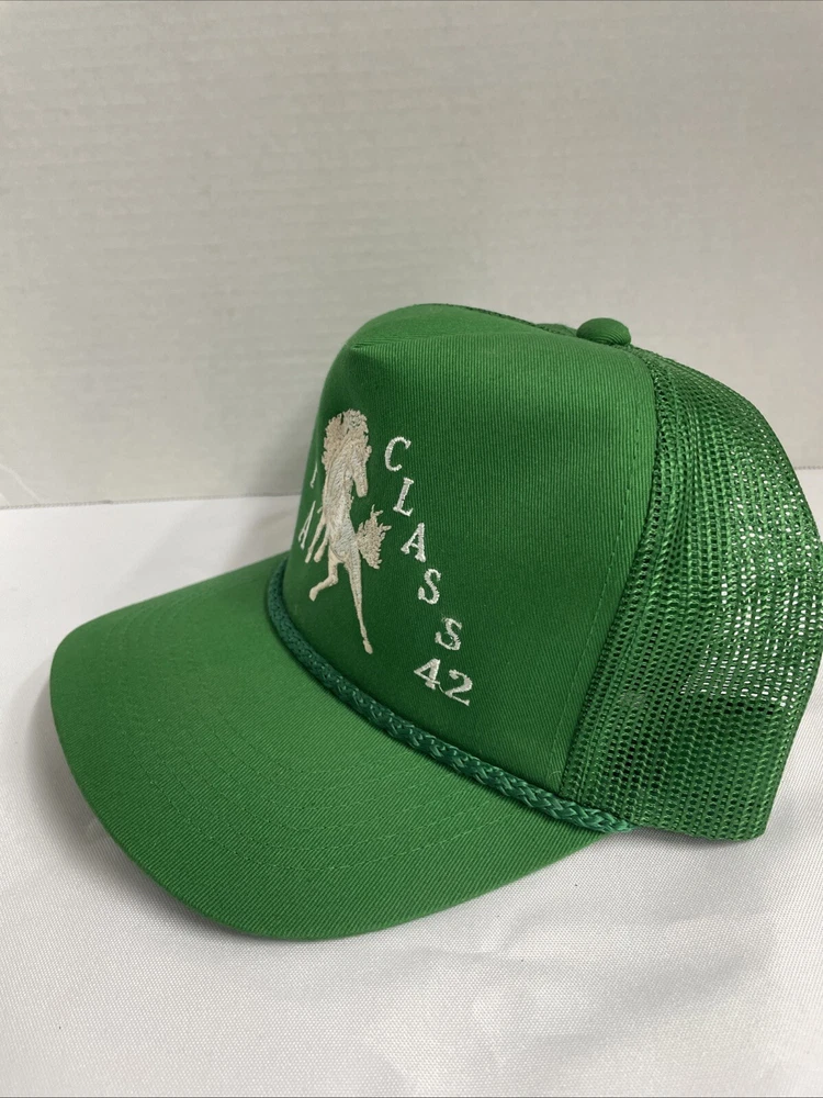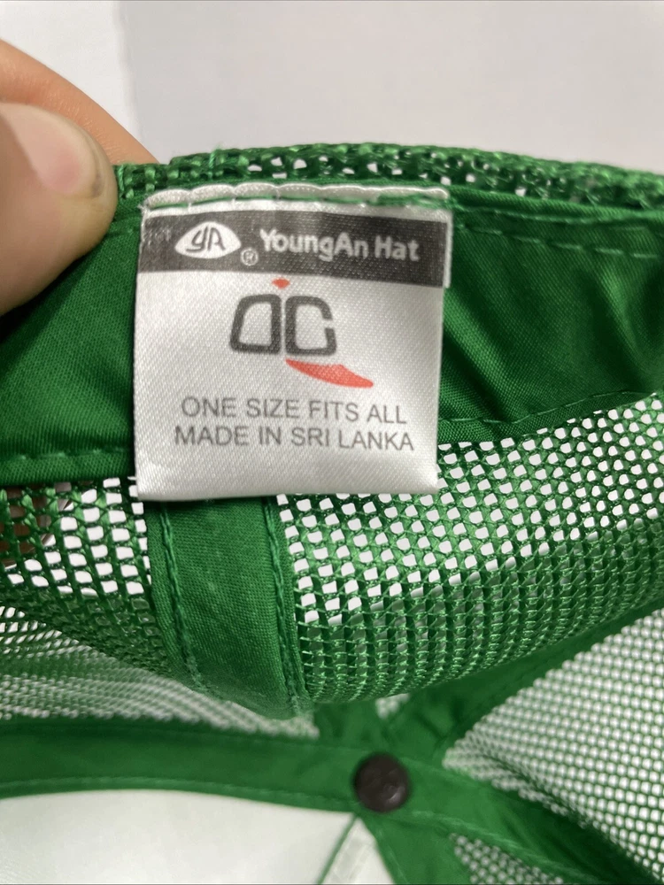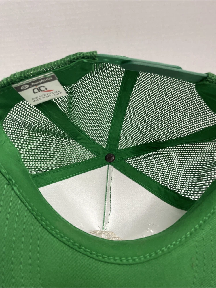 Green "Horse" Trucker Hat by Young An Hat, designed for anyone in a one size fits all. Featuring a mesh back for breathability and an adjustable strap for a comfortable fit. The hat is designed with a horse theme and is perfect for casual wear. SOLD AS IS BO REFUNDS