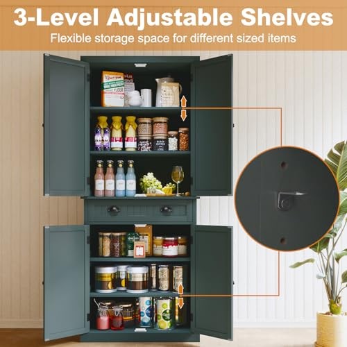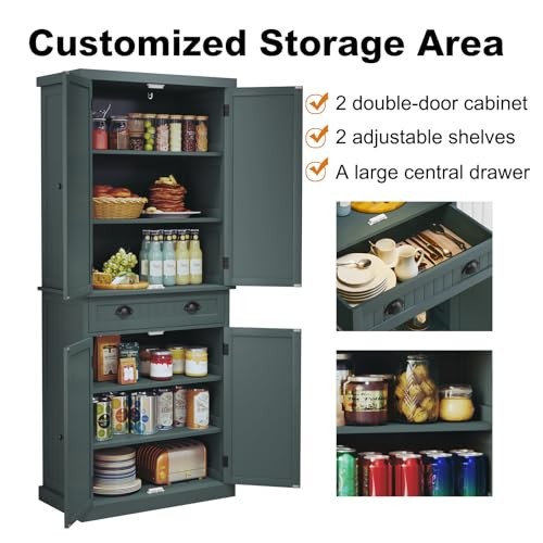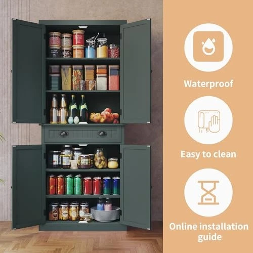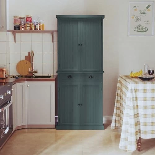 Menu 1. We require immediate payment. 2. We currently accept payment via eBay managed payments only. 3. Once payment is cleared, we will dispatch your shipment within 1-3 business days. Please refer to the "Shipping" tab for more information regarding shipping speed to your destination. Kitchen Pantry Storage Cabinet with Drawer and Adjustable Shelves, Pantry Cabinet for Kitchen, Bathroom or Hallway, Green Product description 【Large Storage Space】The tall pantry features a single center drawer and both the upper and lower cabinet with 2 fixed and 2 adjustable shelves, which allow you to adjust the height in 3 levels to meet your individual needs. Pantry cabinets are perfect to store living goods, small appliances, cookware, and a variety of kitchen supplies. 【Sturdy and Safe】 The whole cabinet is made of P2 class MDF boards and lead-free environmentally friendly paint, The special waterproof coating makes the surface smooth and flat for easy cleaning. High-quality materials ensure this product is more durable, stable, and long service time, keeping you and your family safe all time. 【Gorgeous Pantry】This white elegant kitchen pantry cabinet is a stylish and handsome piece of furniture, it has vertical smooth line on the panels, and pure green modern colors overall the entire product, so that makes this white kitchen pantry cabinet will fit well with your existing home decor 【Multipurpose Pantry Cabinet】This storage cabinet has large storage space, which can be considered as a great storage solution in different rooms. It is suitable for most rooms in your home and it can provide extra storage space in the bathroom, kitchen, or hallway. 【Not easy to assemble?】We provide installation video instructions, which can be viewed on this detail page. The cabinet comes with the required accessories and installation instructions. We also provide professional installation guidance, so if you have any questions, please feel free to contact us. PLEASE MESSAGE US IF YOU HAVE ANY OTHER QUESTIONS, AND MANY THANKS FOR READING ALL OF THIS. Copyright ©#. All Rights Reserved.