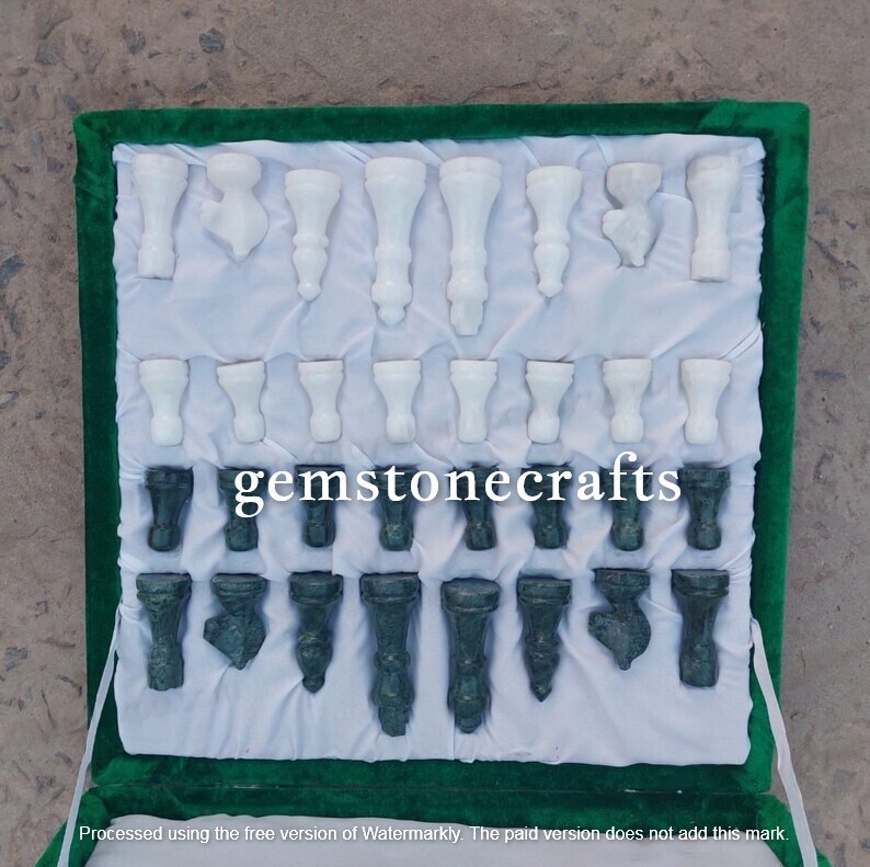 Product Information Type: Chess Top Size: 12x12 Inches Shape: Square Color: Green About Product Introducing our exquisite marble chess set, a timeless addition to any game collection. Crafted with precision and elegance, this set showcases the natural beauty of marble, with each piece meticulously carved and polished to perfection. Elevate your loved one's game room with our exquisite marble chess table, the perfect personalized gift for him. Crafted with high-quality marble, this luxurious table is not only a functional piece for playing chess but also a stunning decorative item that adds sophistication to any space. The personalized touch makes this gift even more special, allowing you to engrave a name, date, or message on the table to create a unique and thoughtful present that will be cherished for years to come. Surprise him with a gift that combines elegance, functionality, and sentimentality with our marble chess table. What is inlay Art? One of the most attractive work of art that comes from marble is"Marble Inlay" work. It is the same work that adorns the Taj Mahal and other Mughal monuments. It is a closely protected traditional art and only a few expert exponents are available today. The delicate process involves cutting and engraving marble shapes manually. To start with, a predefined pattern e.g., floral design or geometrical design is engraved on the marble slab. Small pieces of marble of different shades are cut delicately to fit in these grooves precisely. These small pieces are then slipped in the grooves. Apart from marble, many other materials can also be used. Kindly Not Any type of leg / base who shown in picture is not included with this product, if you want to separate please contact us. The table shown in picture is custom made product. We made same as listing product for you. Thanks for visiting......