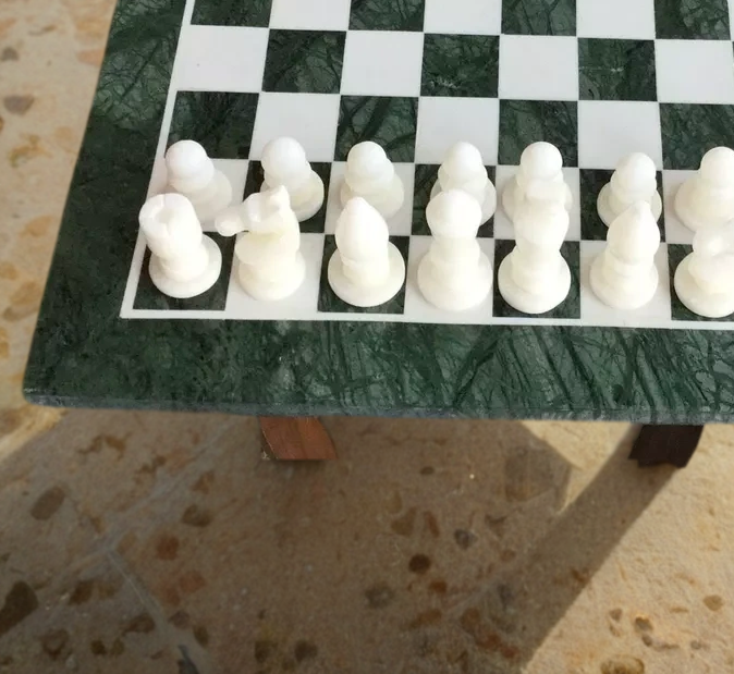 Product Information Type: Chess Top Size: 15x15 Inches Shape: Square Color: Green About Product Introducing our exquisite marble chess set, a timeless addition to any game collection. Crafted with precision and elegance, this set showcases the natural beauty of marble, with each piece meticulously carved and polished to perfection. Elevate your loved one's game room with our exquisite marble chess table, the perfect personalized gift for him. Crafted with high-quality marble, this luxurious table is not only a functional piece for playing chess but also a stunning decorative item that adds sophistication to any space. The personalized touch makes this gift even more special, allowing you to engrave a name, date, or message on the table to create a unique and thoughtful present that will be cherished for years to come. Surprise him with a gift that combines elegance, functionality, and sentimentality with our marble chess table. What is inlay Art? One of the most attractive work of art that comes from marble is"Marble Inlay" work. It is the same work that adorns the Taj Mahal and other Mughal monuments. It is a closely protected traditional art and only a few expert exponents are available today. The delicate process involves cutting and engraving marble shapes manually. To start with, a predefined pattern e.g., floral design or geometrical design is engraved on the marble slab. Small pieces of marble of different shades are cut delicately to fit in these grooves precisely. These small pieces are then slipped in the grooves. Apart from marble, many other materials can also be used. Kindly Not Any type of leg / base who shown in picture is not included with this product, if you want to separate please contact us. The table shown in picture is custom made product. We made same as listing product for you. Thanks for visiting......