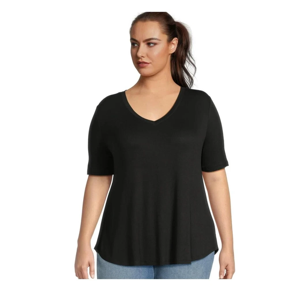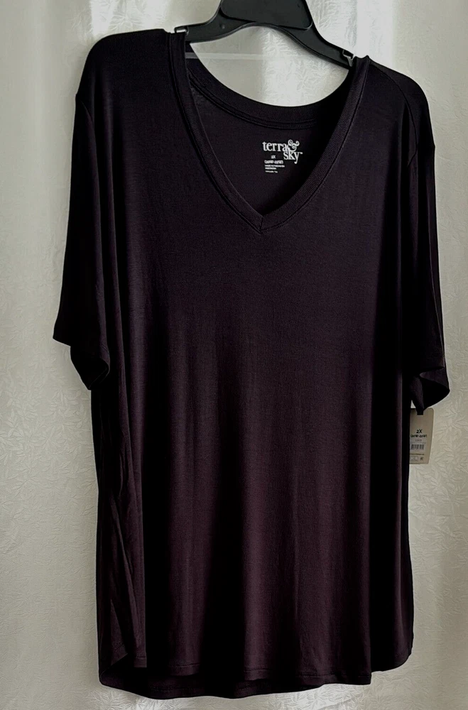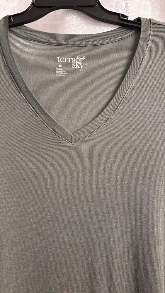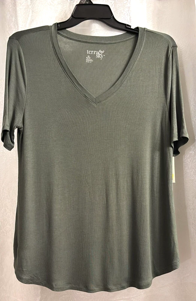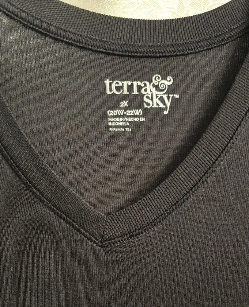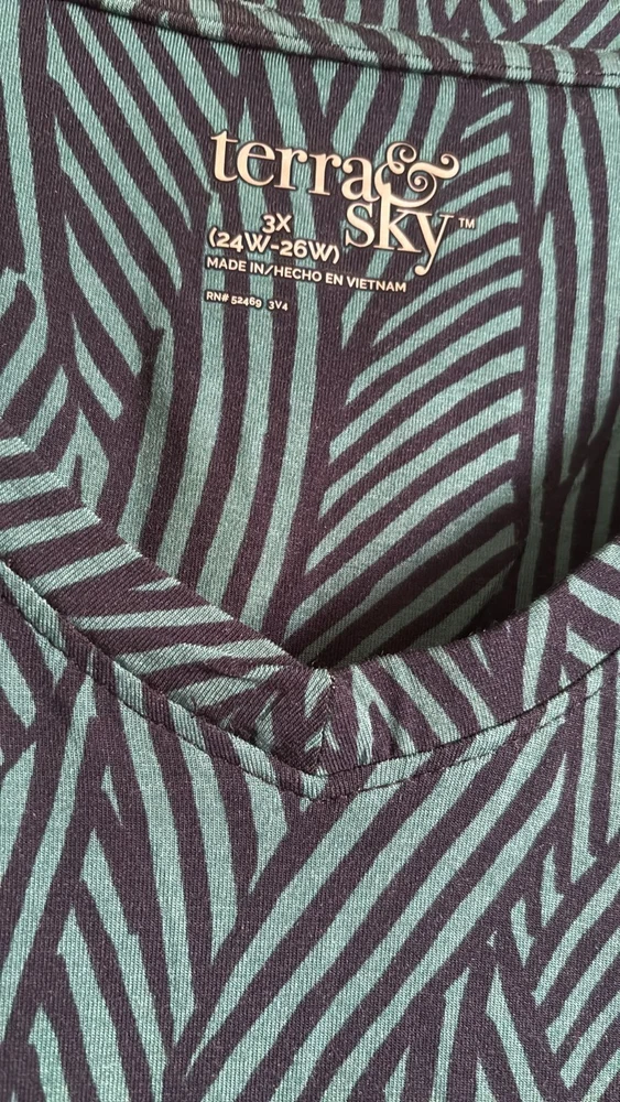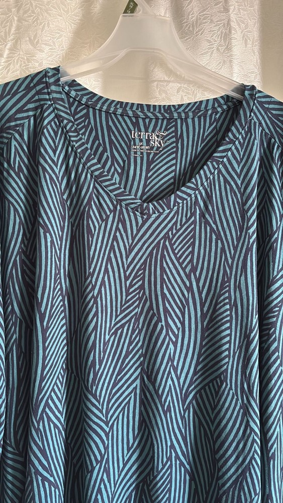 Stripe teal color , v neck tunic tee fron Terra &Sky Size 3 XL, 93% modal and 7 % spandex. Solid midnight green, v neck .Size 0XL or black Size 2XL both 97% modal and 3% spandex. Machine washable,easy care,lightweight. Teal color 3XL Black size 2XL. Midnight Green size 0X. Please specify the one you want, thank you! Price is for 1.