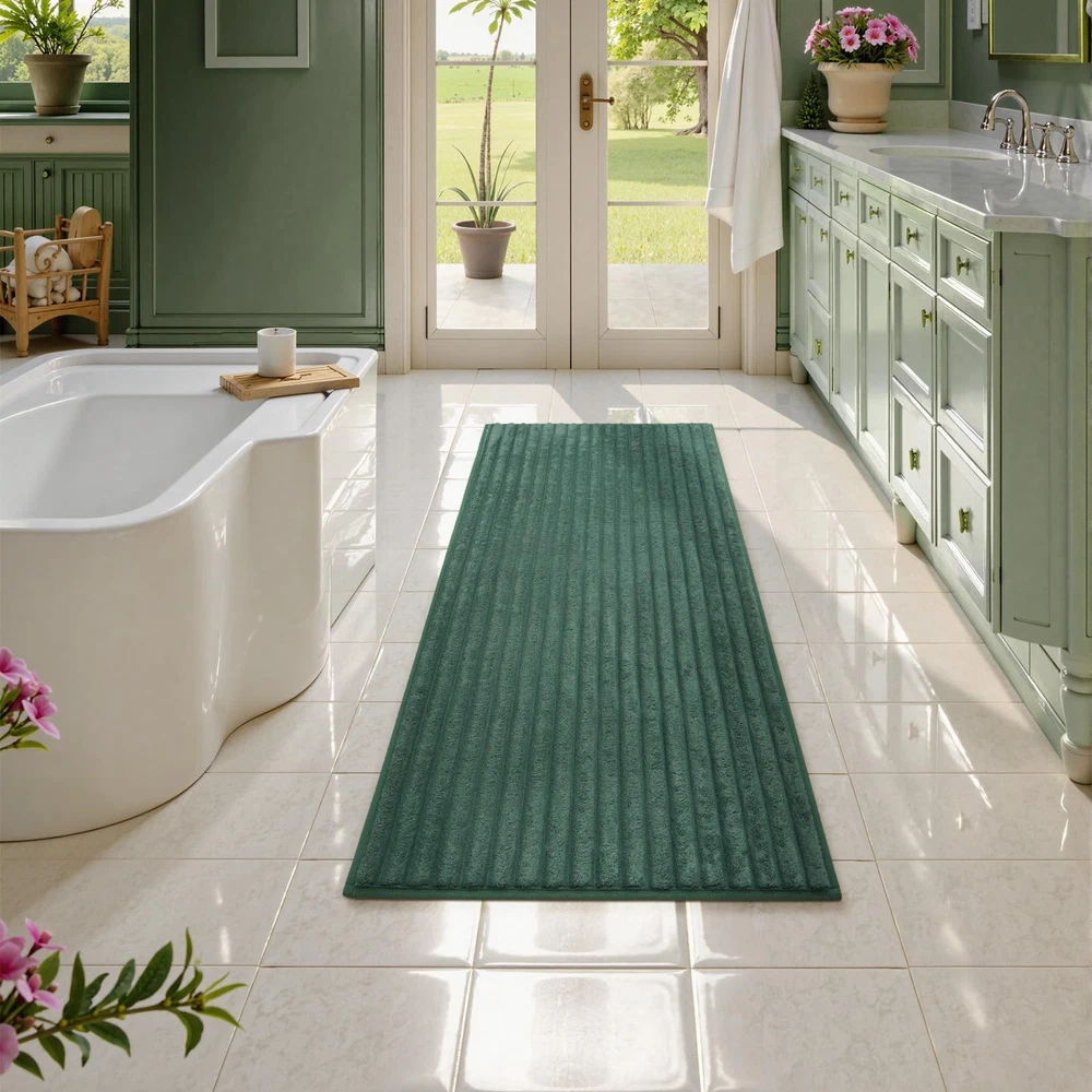 A stylish bathroom rugs give your home decor a new look. Vintage, classic, and charming, this bathroom rug of ours comes in a variety of sizes and colors to match your space's decor. It will be a good choice when you are looking for a bathroom rug that will bring a modern artistic decoration to your bathroom, warmth and excellent comfort for your feet! Why is it good for bathroom rugs? Imagine a lovely, uniquely designed bath mat in your bathroom, stepping out onto a cloud-like, cozy rug, and having your feet wrapped in warmth. Cleaning a floor mat is undoubtedly a hassle, but with this, a tough and easy-to-clean mat will take the worry out of it, and it's machine washable or hand washable! If you live with children or the elderly, the first thing you want to do when choosing a bath mat is to prevent slip problems. This non-slip bath mat solves that problem. The plush material allows it to absorb moisture quickly, so your feet will be dry and your floors won't be wet after your bath! Anti-Skid Rubber Backing: Unlike ordinary TPR material, the rubber backing has a higher anti-slip effect to hold the mat in place to protect you and your family. Use on a clean, dry, flat surface where water underneath the rug can make it slippery Ultra Soft & Aesthetic Design: Striped embossed design makes your home decoration modern and beautiful, soft plush makes your feet say goodbye to cold and rough floors, enjoy the cozy and warm feeling Quick Dry & Water Absorbent: The surface made of microfiber material ensures that you step on the dry and cozy plush mat after showering or while getting ready at the sink, allowing your feet to dry fast and preventing the floor from dripping Easy to Clean: The texture is tough and not easy to peel off, it can withstand multiple machine or hand washes and the color will not fade after washing. Tips Wash with cold water and neutral detergent, hang dry or tumble dry at low temperature Multipurpose Use: Available in a variety of sizes, whether it's near a bathroom entrance, bathtub, sink, toilet, bedroom, laundry room or hallway, the bathroom mat seamlessly blends in and completes the look of any space to brighten up your home