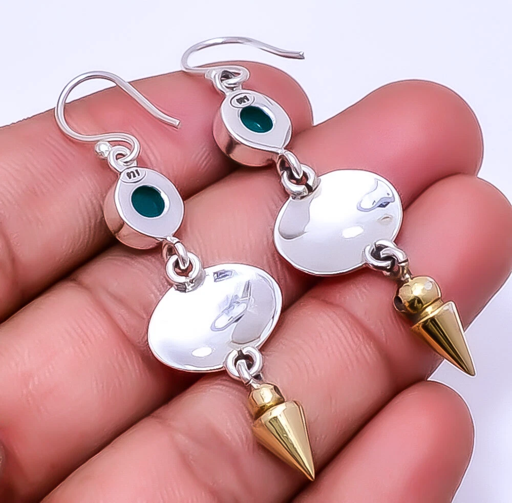 Theme Beauty Main Stone Depth As Seen in Picture Main Stone Length As Seen in Picture Main Stone Width As Seen in Picture Seller Warranty Yes Shape As Seen in Picture SKU E_9321_102_26 Main Stone Size 8X8 Mm Antique Yes Handmade Yes Type Earring Style Drop/Dangle Metal Sterling Silver Metal Purity 925 Parts Per 1000 Base Metal Sterling Silver Total Carat Weight 38.5 Main Stone Green Onyx Main Stone Creation Lab-Created Main Stone Shape Round Main Stone Color Green Main Stone Treatment Lab-Created Material Gemstone, Stone Number of Gemstones 2 Item Length 2.34 Features Engraved, Nickel-Free, Handcrafted Ear Area Lobe Brand Unbranded Country/Region of Manufacture India Country of Origin United States Color As Seen in Picture Diamond Clarity Grade Not Applicable Number of Diamonds As Seen in Picture Item Diameter As Seen in Picture Gemstone Clarity Grade Opaque Diamond Color Grade Not Applicable Customized No Colored Diamond Intensity Not Applicable Certification 100% Genuine Guaranteed Setting Style Bezel Occasion Christmas, Birthday, Anniversary, Engagement, Wedding, Valen Shipping & Handling - Charge - 1st item-5.90 And Additional item-1.90 Handling Time - 1 Days . Delivery Time - 2 TO 3 DAYS. Shipping Service - USPS First Class Package 2 -3 Days. Returns - 1.We offer a 100% Money Back Guarantee minus shipping for 30 days after receiving the Item / item's. 2..The item must not be altered or damaged in any way shape or form. 3.Upon receiving these items your payment will be refunded. 4.Email us for return instructions before sending merchandise back. 5.Please allow up to 1 business day for all returns to receive credit. 6.Sizing does not affect the return policy. Payment - We accept PayPal for Payment ,should made with in 14 days once buying or winning done , in case of late information expected .