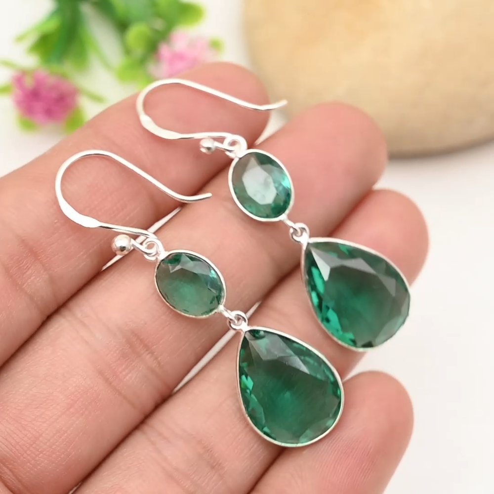 Green Onyx Sterling Silver Handmade Earrings Gift Jewelry