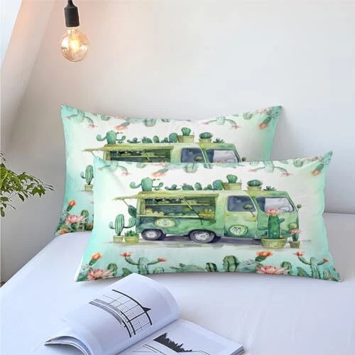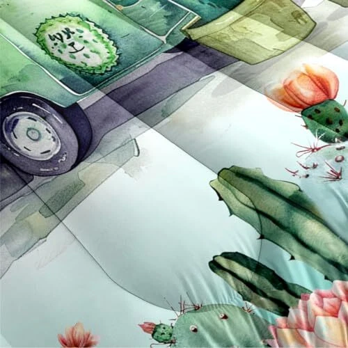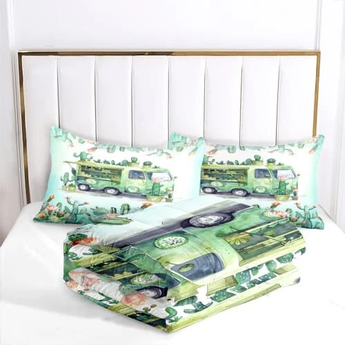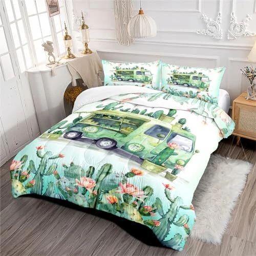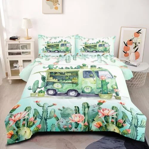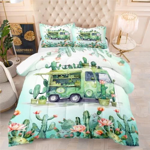 Green Rv Comforter Sets Queen Size,Cactus Bedding Set for Women Men,Plant