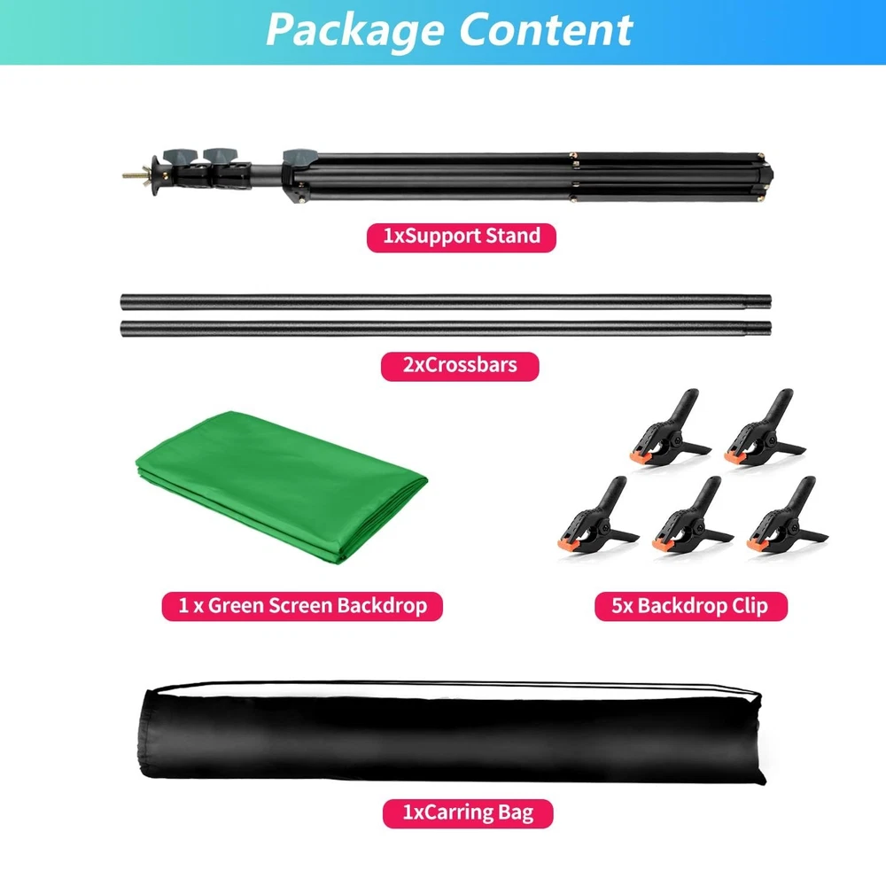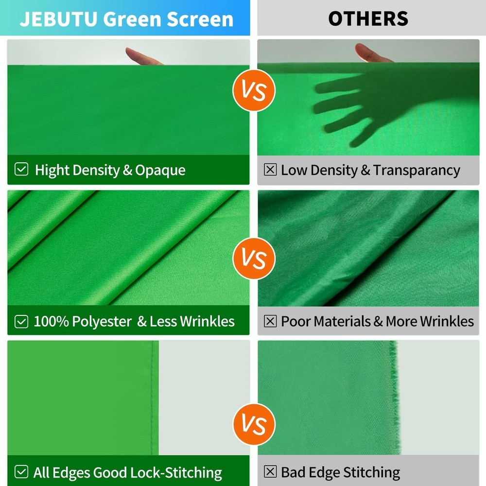 Green Screen Backdrop Kit with Stand, 5X6.5ft Portable Green Screen Backdrop with Stand kit, GreenScreen Background with Stand Carrying Bag Clamp for Streaming Video Zoom Product Details Size: 5 x 6.5 Ft Color: Green Brand: JEBUTU MPN: 1520T+GR UPC: 785249522475 EAN: 0785249522475 Color: Green Size: 5 x 6.5 Ft Brand: JEBUTU Item Weight: 4.85 Pounds Product Care Instructions: Hand Wash, Machine Wash Product Dimensions: 32.28 x 60 x 0.04 inches Item Weight: 4.85 pounds Item model number: 1520T+GR Date First Available: April 9, 2021 Manufacturer: JEBUTU Wide Used & Note & Package Content: 1)JEBUTU green screen backdrop with stand kit is a good alternative product for professional background screen. Suitable for streaming, portrait photo,interview setting, broadcast, film making, photography shooting, video shooting, etc 2)If there are any questions about JEBUTU green screen with stand, feel free to contact us. 3)Package included: Green Screen Backdrop x1,T-shape Backdrop Stand x1,Carrying Bag x1,Backdrop Clip x5 Green Screen Backdrop:JEBUTU green screen is made of high-quality polyester with a seamless design, Not prone to wrinkles. Good abrasion resistance, stronger and durable. Warm tips: This streaming green screen backdrop is folded and transported for a long time, it should be ironed with steam before use Stable Green Screen Stand: The photo backdrop stand is made of aluminum alloy for durability and long life. After frosted, it is qualifiable and not easy to scratch. It can adjustable from 2.69ft(82cm) to 6.5ft(200cm) in height Machine Washable & Hand Washable:JEBUTU protable green screen backdrop material is durable, When becomes dirty,it can be cleaned by machine or hand. After washing, please smooth the pantalla verde and lay it flat Portable & Easy to Store: T-shaped background stand has an adjustable telescopic mechanism. Features adjustable telescoping mechanism for raising and lowering. Put it in the storage bag. A completely folded tripod does not take up space, is easily stored