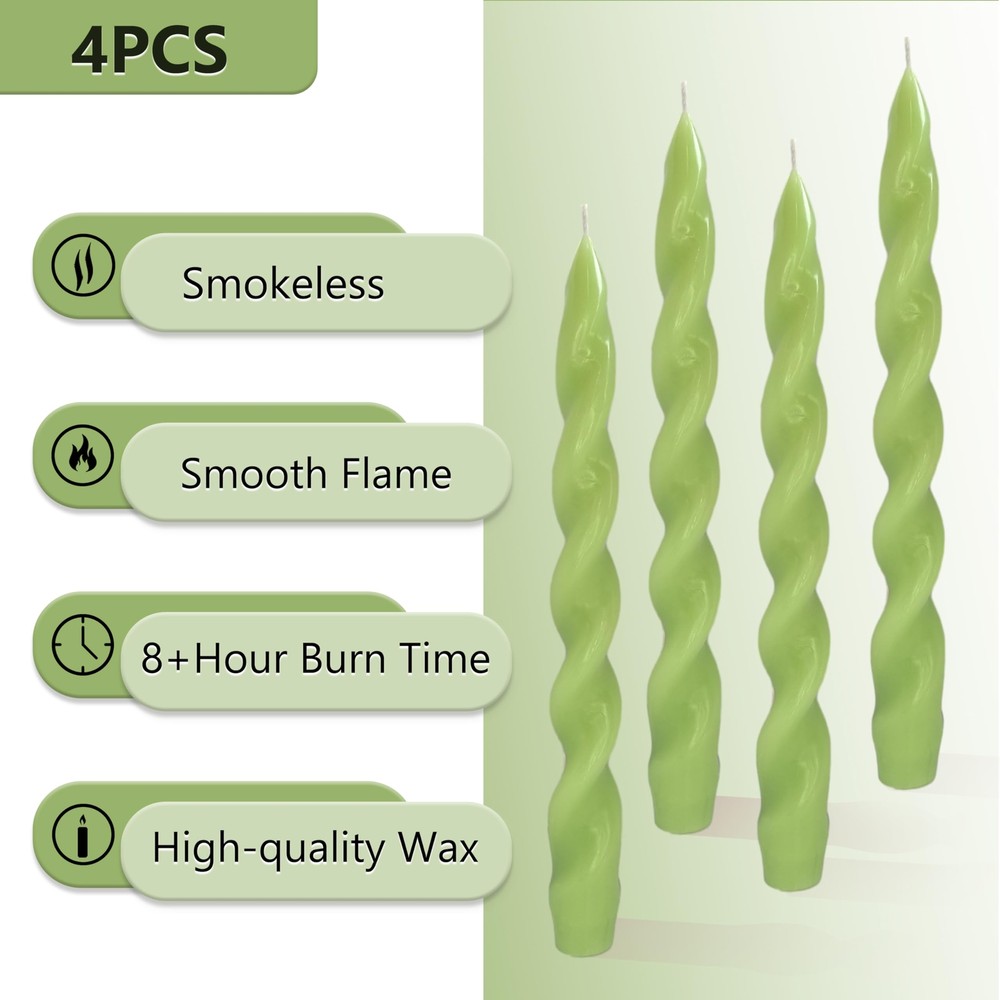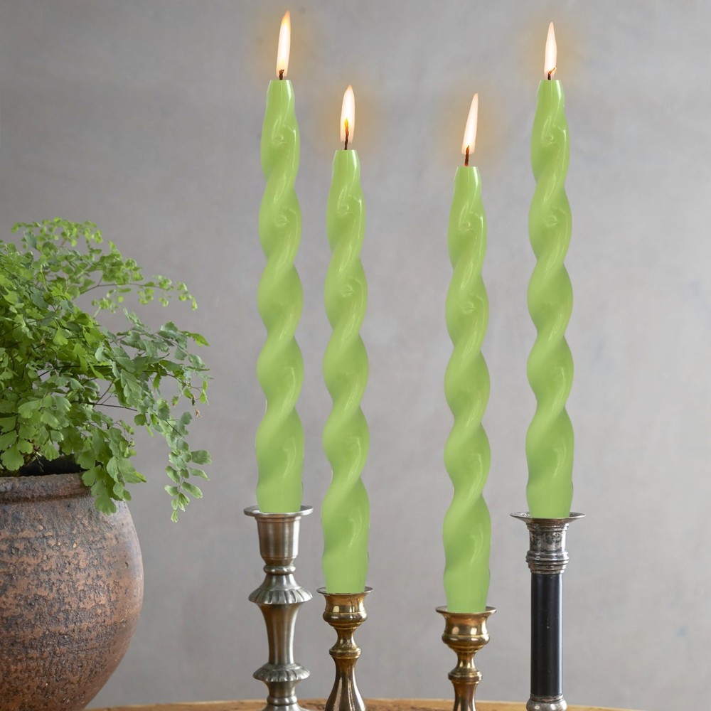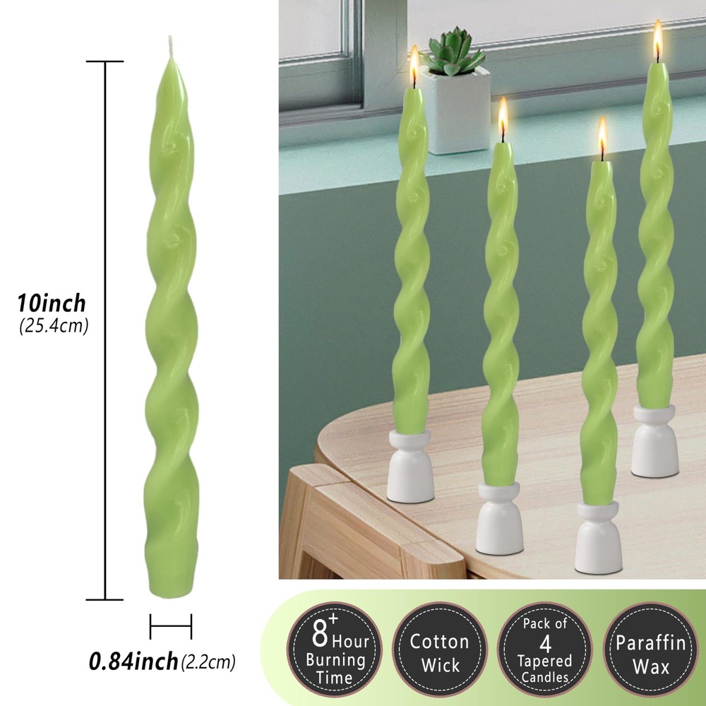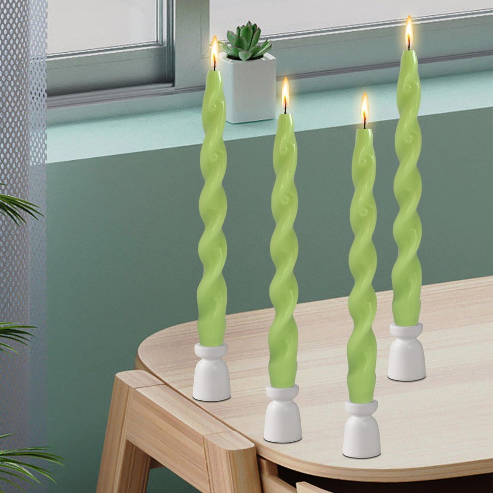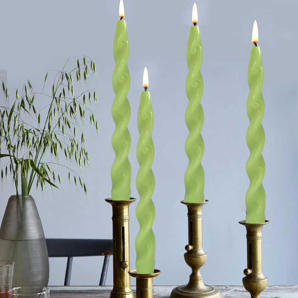 Green Spiral Taper Candles 10 Inch Twisted Candlesticks for Decorative Lighting