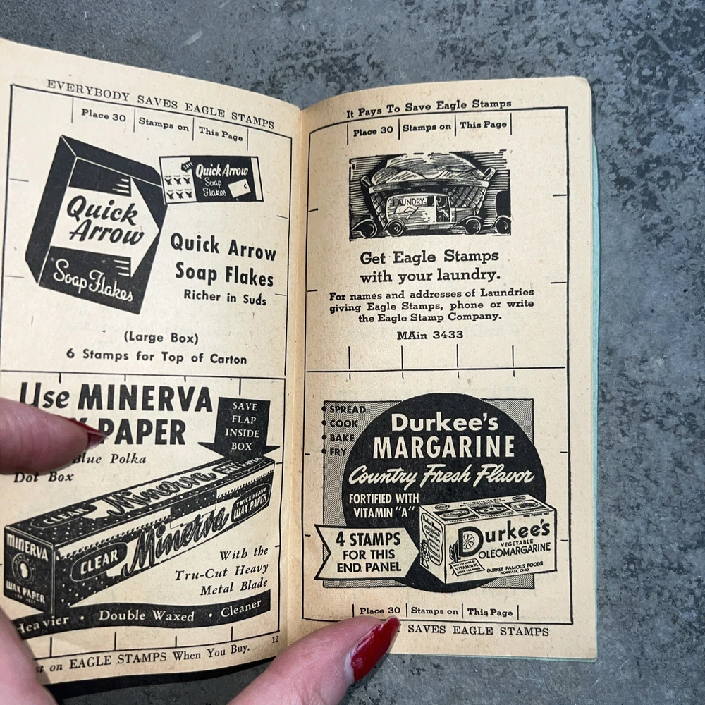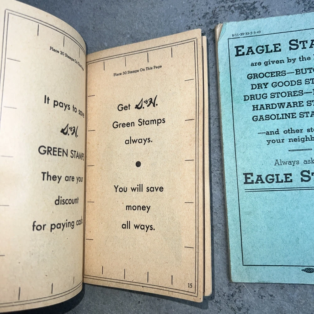 This Green Stamp and Eagle Stamp Book is a rare vintage item that is perfect for collectors of advertising and merchandise memorabilia. The book features a beautiful green color that will make a great addition to any collection. The stamps in this book are perfect for adding a unique touch to your collection, and the eagle stamp is a special bonus that makes this item even more special. Don't miss out on the chance to add this rare vintage item to your collection.