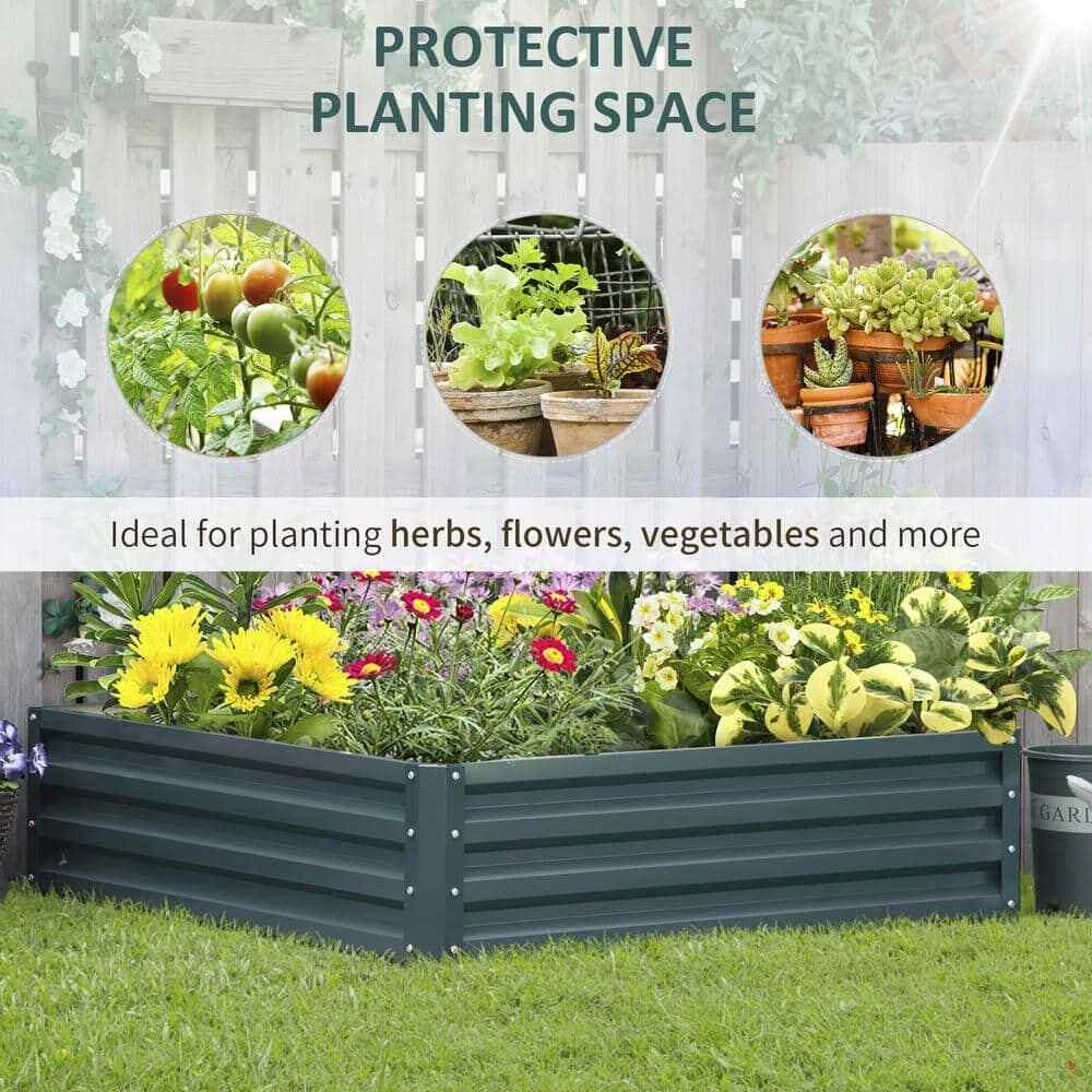 Extra-deep design protects plants from weed and elements Open bottom provides drainage for long roots of vegetables Solid metal construction with water resistant coating Brand Outsunny Type Raised Planter Boxes UPC 196393069707 Model 845-040V01GN Richguysbrh7 Your dream home is here Green Steel Raised Garden Bed Box with Weatherized Steel Frame Extra-deep design protects plants from weed and elements Open bottom provides drainage for long roots of vegetables Solid metal construction with water resistant coating If you have multiple kinds of plants or flowers that you want to keep organized or have a limited amount of deck or balcony space and want to start your garden, this Outsunny metal raised garden bed is the perfect choice for you. The extra-deep sides and open bottom allow you to grow long root vegetables while not having to worry about water build-up. Get more than 1 of these metal garden beds and keep your garden organized with Outsunny. Solid metal construction with water-resistant coating for long-time use; Extra deep 11.75 in. design protects plants from outside elements and weeds Open bottom provides drainage and is great for long rooted plants; Assembly required; Click here to shop all Outsunny products Color Family:Green|Color Family:Green|Color/Finish:Green|Color/Finish:Green|Material:Steel|Material:Steel|Pots & Planters Type:Raised Beds|Pots & Planters Type:Raised Beds|Product Weight (lb.):11.46 lb|Product Weight (lb.):11.46 lb|Raised Bed Features:No Addional Features|Raised Bed Features:No Addional Features|Returnable:90-Day|Returnable:90-Day|Shape:Square|Shape:Square|Container Height (in.):11.75|Container Height (in.):11.75|Container Length (in.):47.25|Container Length (in.):47.25|Container Width (in.):47.25|Container Width (in.):47.25 Item Specifics Brand Outsunny Type Raised Planter Boxes UPC 196393069707 Model 845-040V01GN Payment Returns Richguysbrh7 Your dream home is here DESCRIPTION PAYMENT SHIPPING RETURN POLICY CONTACT US Green Steel Raised Garden Bed Box with Weatherized Steel Frame Extra-deep design protects plants from weed and elements Open bottom provides drainage for long roots of vegetables Solid metal construction with water resistant coating If you have multiple kinds of plants or flowers that you want to keep organized or have a limited amount of deck or balcony space and want to start your garden, this Outsunny metal raised garden bed is the perfect choice for you. The extra-deep sides and open bottom allow you to grow long root vegetables while not having to worry about water build-up. Get more than 1 of these metal garden beds and keep your garden organized with Outsunny. Solid metal construction with water-resistant coating for long-time use; Extra deep 11.75 in. design protects plants from outside elements and weeds Open bottom provides drainage and is great for long rooted plants; Assembly required; Click here to shop all Outsunny products Color Family:Green|Color Family:Green|Color/Finish:Green|Color/Finish:Green|Material:Steel|Material:Steel|Pots & Planters Type:Raised Beds|Pots & Planters Type:Raised Beds|Product Weight (lb.):11.46 lb|Product Weight (lb.):11.46 lb|Raised Bed Features:No Addional Features|Raised Bed Features:No Addional Features|Returnable:90-Day|Returnable:90-Day|Shape:Square|Shape:Square|Container Height (in.):11.75|Container Height (in.):11.75|Container Length (in.):47.25|Container Length (in.):47.25|Container Width (in.):47.25|Container Width (in.):47.25 Item Specifics Brand : Outsunny Type : Raised Planter Boxes UPC : 196393069707 Model : 845-040V01GN Payment Returns All rights reserved. Hot Item New List Item Help & Info Payment Policy Shipping Policy Return Policy FAQ About Us