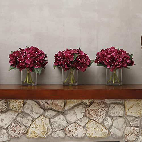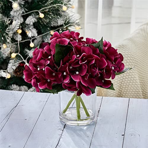 Return Policy Fast Delivery Trusted seller GreenHouzz Artificial Flowers in Clear Glass Vase with Faux Water Silk Hydrangea Arrangement Centerpiece Decorations for Home Wedding Office Table (Burgundy) Product Description Beautiful and Elegant: This Hand crafted hydrangea arrangement with 4pcs silk hydrangeas offers a boost of botanical beauty without any upkeep. Set within a cylindrical clear glass vase with acrylic water. It literally looks like real flowers in water. Natural-looking: This artificial hydrangea silk flower and leave are made of soft silk material, and the stems are iron wire wrapped with durable plastic to mimic the look of hydrangea. This clear glass cylinder vases are crafted of high quality, blemish-free, crystal clear glass to maximize content visibility. Each cylinder features thick glass walls and weighted base to ensure durability. Multi-use: The hydrangea centerpieces are the perfect size for weddings, bridal showers, baby showers, dining table, living room, kitchen and office décor, bathroom decoration, mantel, counter, desk, side table or console. Adds a nice touch to any space. No maintenance or water required. Looks full and fresh every day, wipe clean with a soft dry cloth. Overall Product Dimensions: 10 In. W x 10 In. D x 10 In. H; Planter/Vase Dimensions: 4.3 In. W x 4.7 In H. Pedals and leaves could be squished on arrival due to longtime transition. Please use a hair dryer to fluff up the product to make it to its best shape. Shipping Returns Payment Shipping Shipping is FREE to all addresses other than APO/PO boxes in the lower 48 states. All our stock ships from US-based warehouses. Shipped via USPS or UPS (depending on location and package weight) Unless stated otherwise, all orders will ship within 24-72 hours of your payment being processed. Check our feedback to see the great reviews of FAST shipping we offer. Returns Seller does not accept returns Payment We currently accept payment via eBay managed payments only. Once payment is cleared, we will dispatch your shipment within 1-3 business days. Please refer to the "Shipping" tab for more information regarding shipping speed to your destination.