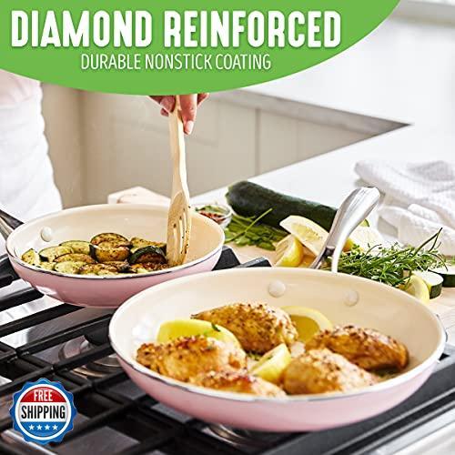 GreenLife Artisan Healthy Ceramic Nonstick, 8" and 10" Frying Pan Skillet Set, Stainless Steel Handle, PFAS-Free, Dishwasher Safe, Oven Safe, Soft Pink Features SET INCLUDES: 8" frying pan and 10" frying pan TOXIN-FREE: Our healthy ceramic nonstick coating is derived from sand and free of PFAS, PFOA, lead, and cadmium for worry-free cooking. CERAMIC NONSTICK: The incredible ceramic nonstick coating delivers easy releases, seamless transfers, and effortless cleaning. OVEN SAFE: Artisan is designed for advanced cooking, so these pots and pans are oven safe up to 600˚F MADE WITH RECYCLED MATERIALS: Cookware vessels (excluding handles) are made from a minimum of 65% recycled materials. DISHWASHER SAFE: Wipe messes away or place in the dishwasher for an even easier cleanup. EASY TO CLEAN: Dishwasher safe, but most messes wipe away EFFORTLESS PERFORMANCE: Delivers on all stovetops, except induction and oven safe up to 350˚F WOBBLE-FREE BASES: Each frypan is reinforced with a wobble-free base for extra strength and even heating Shipping Free & Fast Shipping: We offer free shipping to most of the USA with a normal delivery time of 3-7 days. However, due to the current situation, additional delivery time (up to 3 weeks) may be required for some items. Alternative Carriers: We may use alternative carriers (e.g., USPS, FedEx, UPS) to ensure your package arrives safely and on time. Due to the use of multiple carriers, we are unable to provide a tracking number automatically. Handling Time: Orders are processed and shipped within 1-2 business days of receiving cleared payment. Shipping Restrictions: Shipping to Alaska, Hawaii, Puerto Rico, Guam, and other US territories may incur shipping charges or delivery restrictions. Please contact us before ordering, or your order can be refunded/cancelled. State Restrictions: Certain items may not be shipped to California due to state regulations. Contact for Tracking Updates: If you require tracking updates or have any concerns about the delivery of your order, please feel free to contact us, and we will be happy to assist you. Return Policy 30-Day Hassle-Free Returns: If you are not completely satisfied with your purchase, you can return the item for free within 30 days of receiving it for a full refund or exchange. Easy Return Process: Contact us, and we will provide you with a prepaid return shipping label and detailed instructions. No Restocking Fee: There are no restocking fees for returns. However, the buyer is responsible for return shipping costs if the return is not due to a seller"s error. Refund Processing: Refunds will be processed within 1 business day of receiving the returned item in its original condition. Feedback Your feedback is extremely important to us. We strive to provide the best products and customer service possible. If you are satisfied with your purchase, please take a moment to leave us a positive review. If you have any concerns or issues with your order, please contact us before leaving negative feedback. We are committed to resolving any problems and ensuring your satisfaction. Contact Us If you have any questions or concerns, please feel free to reach out to our customer support team. You can contact us through the eBay messaging system. We are available Monday to Friday, 9:00 am to 5:00 pm EST, and we will do our best to respond to your inquiry within 24 hours. Thank you for supporting our small family business!
