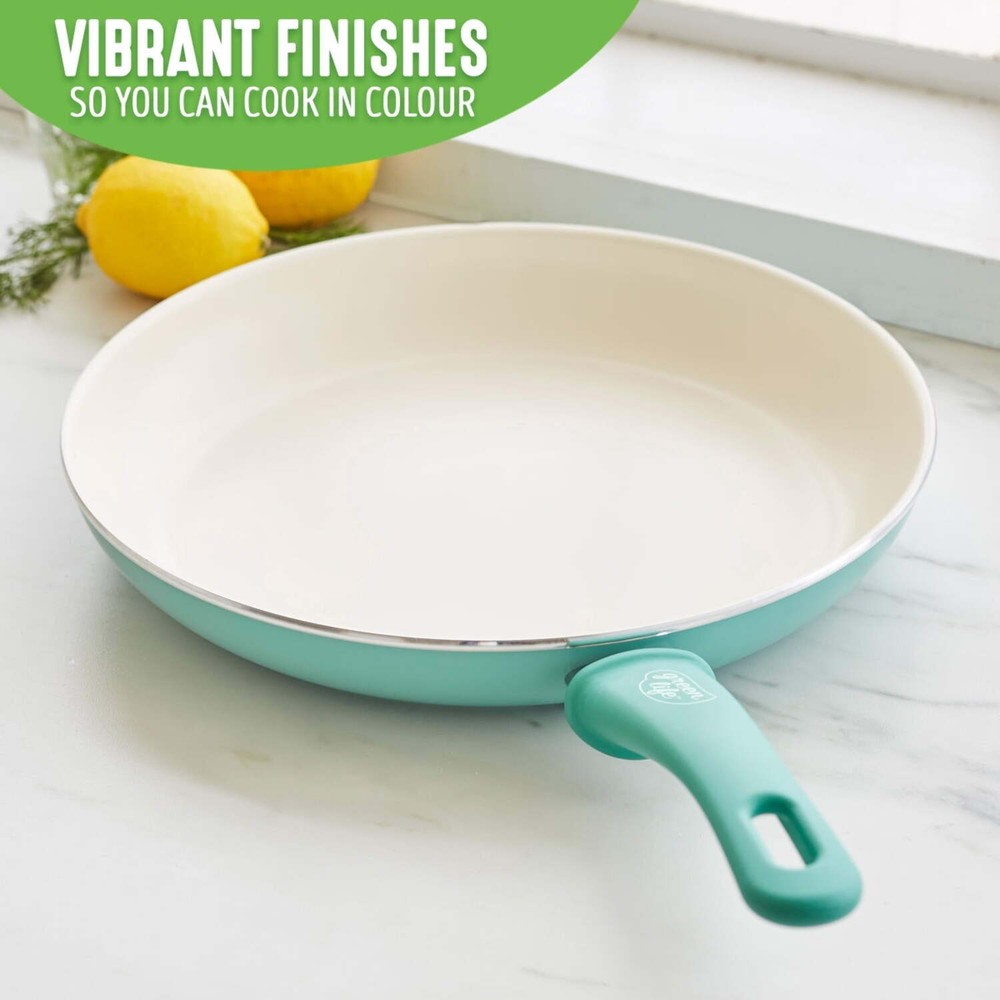 You’ll flip for this frypan—whether making pancakes and scrambled eggs or sautéing veggies and searing meat. Plus, the bright colors make kitchen time more fun. Our Soft Grip collection helps you get a grip—literally! Stay-cool bakelite handles offer extra comfort that makes everyday cooking easier than ever. Best of all, our healthy ceramic nonstick coating releases even the stickiest foods (hello, cheese) effortlessly and wipes clean in seconds, no soaking required. Our healthy and easy-to-clean ceramic nonstick coating is derived from sand and free of PFAS, PFOA, lead, and cadmium for effortless cooking and quick cleanup Soft Grip's Bakelite handle is designed to stay cool on the stovetop for maximum comfort Made from recycled aluminum and reinforced with a wobble-free base for extra strength and even heating Dishwasher safe, but most messes wipe away Rivet less interior to prevent snags and food buildup Oven safe to 350°F For all stovetops except induction