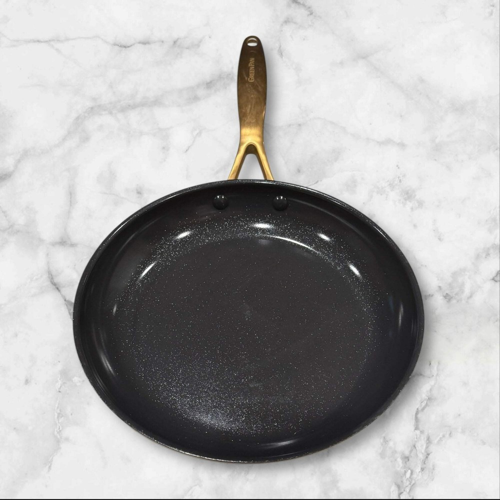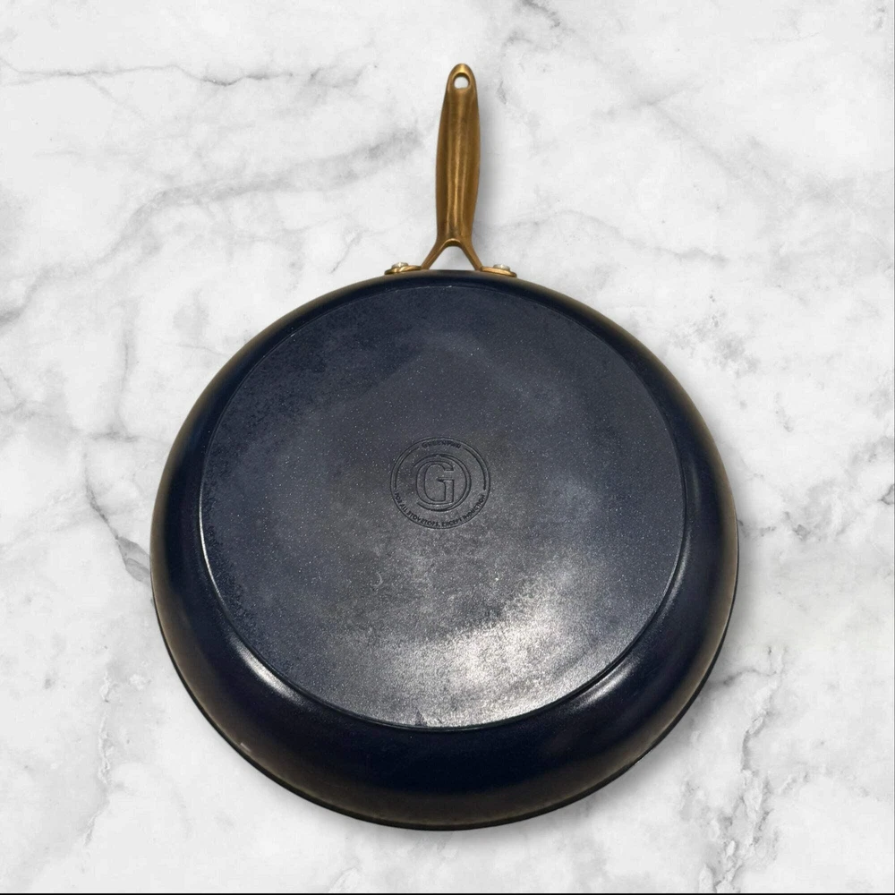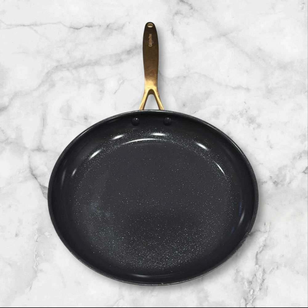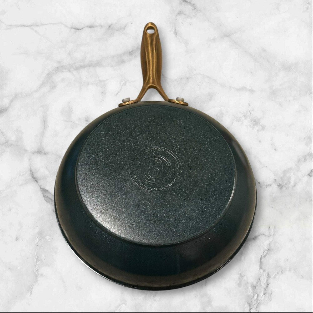 GreenPan Jewel 3-Piece Fry Pan Set Nonstick Gold Handle Excellent Surface This GreenPan Jewel 3-piece fry pan set (8.15”, 10.5”, 12.09”) features the Thermolon Infinite8 ceramic nonstick coating—diamond-reinforced for durability and toxin-free. The gold-tone handles add luxury flair, while the hard-anodized bodies offer scratch resistance and even heat. Cookware surfaces are excellent; bottoms show light wear. Oven-safe to 600°F and dishwasher-safe, this set is perfect for daily use or as a stylish kitchen upgrade.Details:•Material: Hard-anodized aluminum, ceramic nonstick, stainless steel handles•Size: 8.15”, 10.5”, 12.09”•Collection: GreenPan Jewel•What’s Included: Set of 3 fry pans•Country of Origin: Made in China•Condition: Excellent interiors, some cosmetic wear on bottoms GreenPan Jewel 3-Piece Fry Pan Set Nonstick Gold Handle Excellent Surface This GreenPan Jewel 3-piece fry pan set (8.15”, 10.5”, 12.09”) features the Thermolon Infinite8 ceramic nonstick coating—diamond-reinforced for durability and toxin-free. The gold-tone handles add luxury flair, while the hard-anodized bodies offer scratch resistance and even heat. Cookware surfaces are excellent; bottoms show light wear. Oven-safe to 600°F and dishwasher-safe, this set is perfect for daily use or as a stylish kitchen upgrade. Details: •Material: Hard-anodized aluminum, ceramic nonstick, stainless steel handles •Size: 8.15”, 10.5”, 12.09” •Collection: GreenPan Jewel •What’s Included: Set of 3 fry pans •Country of Origin: Made in China •Condition: Excellent interiors, some cosmetic wear on bottoms × × × × × × × × × Buy now and save! Shipping info Click the Shipping & Payments tab above the listing description for more info Click the Shipping & Payments tab above the listing description for more info! Additional delivery notes PICK UP OPTION Sorry, our items are NOT available for pick-up. PAYMENT Immediate payment is required upon selecting "Buy It Now" or upon checking out through the cart. We accept payment via U.S. PayPal accounts and all Major Credit Cards, Debit Cards & Google Pay. We are legally required to collect sales tax in those states and localities where we maintain a physical presence (nexus). The applicable amount of sales tax charged to an order will be calculated based on the shipment destination's state and local sales tax laws. Thank you for shopping with us on eBay! Additional Information No additional information at this time Ask seller a question You might also like Egg Wooden Serving Board - Threshold Flex Strainer Sink Strainer & Stopper 2-N-1 Fits Most 3.5” Drains & Disposals, C POURO Twist & Pour Resealable Bottle Pouring Spouts for Kitchen and Bar Pampered Chef Stoneware | Baking Bowl Contact To contact our Customer Service Team, simply click the button here and our Customer Service team will be happy to assist. Ask seller a question © Kitchen Switchen Shipping & Payments Click the Shipping & Payments tab above the listing description for more info Payment Accepted Payment Methods Immediate payment is required upon selecting "Buy It Now" or upon checking out through the cart. We accept payment via U.S. PayPal accounts and all Major Credit Cards, Debit Cards & Google Pay. We are legally required to collect sales tax in those states and localities where we maintain a physical presence (nexus). The applicable amount of sales tax charged to an order will be calculated based on the shipment destination's state and local sales tax laws. Thank you for shopping with us on eBay! Returns Returns are accepted Items must be returned within 30 days of the auction ending Buyer will pay for return shipping. eBay integration by