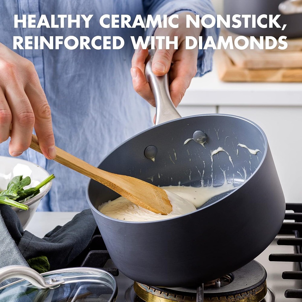 GreenPan Lima 1qt & 2qt Ceramic Non-Stick Saucepan Set with Eco-Ceramic Coating