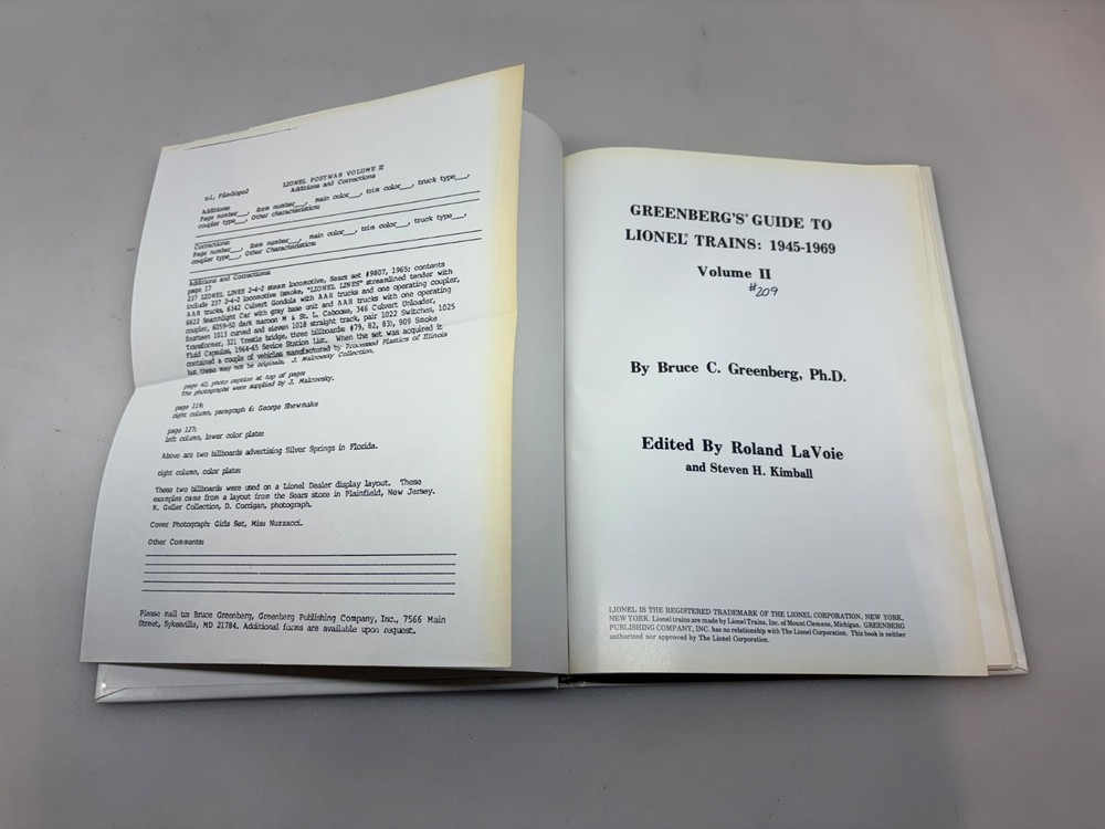 Up for sale one Used Greenberg's Guide to Lionel Trains 1945-1969 Volume II. Includes Additions and Corrections page. Free Shipping!