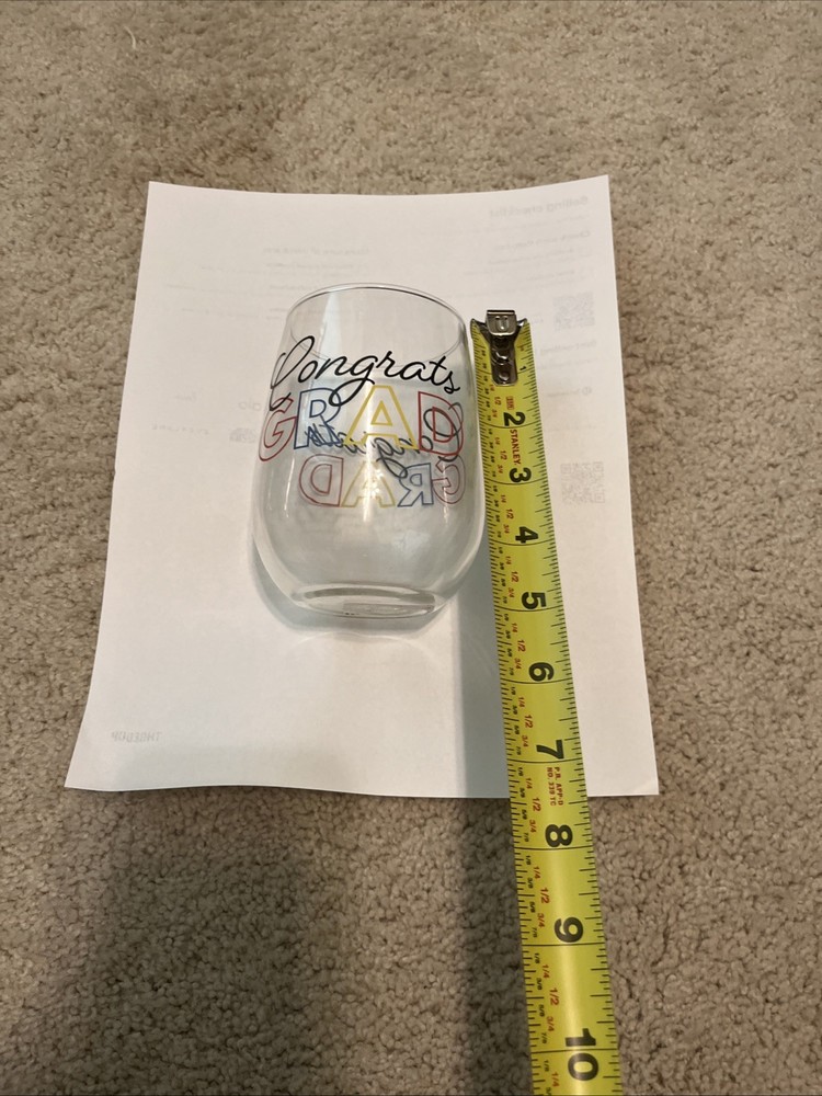 Celebrate special occasions with this beautiful Greenbrier "Congrats GRAD" stemless wine glass. The glass is made of high-quality clear glass material and features a geometric shape with an inspirational and happy design. The glass is decorated with a bear and the words "Congrats GRAD" making it an excellent choice for all occasions. This 17oz wine glass is perfect for adults and is a great addition to any kitchen, dining, or bar collection. The glass is 5 inches tall and features a round design with a capacity of 17oz. The glass is from the Cristar brand and is an excellent choice for those who want to celebrate their graduation or any other special occasion.