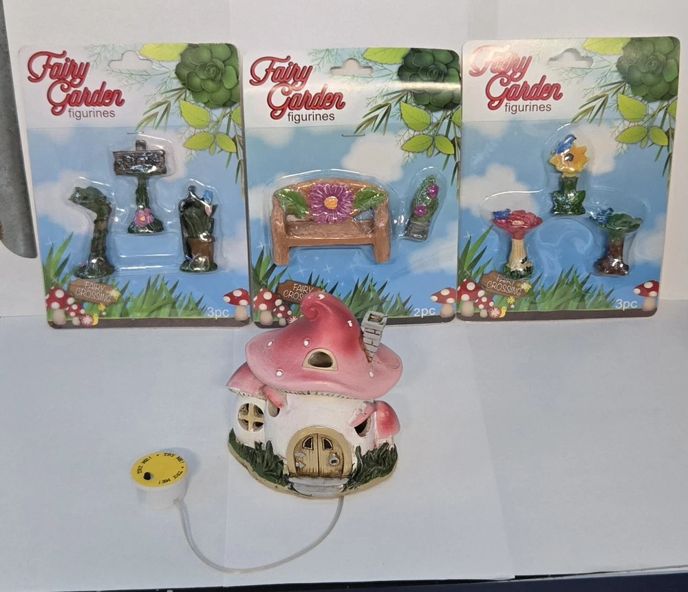 Greenbrier Resin Fairy Garden Set 9 Pieces Miniature Lighted House And Decor. Condition is Pre-owned for the hose but everything in the packages is new never opened. Packaging shows wear from storage and price removal. Please look at all the pictures carefully for more detail. So please If you have any questions feel free to contact me. Please note that if you are buying from outside the United States your country might charge fees that you are responsible for and Any orders shipped using Forwarding Services and shipped out of the country do so at their own risk, these services can inadequately repack the product resulting in damage. Ebay now handles all sales tax, If you reside in a state that requires it, Ebay will include it during checkout. There is nothing I can do to change this. I will only ship to the address on file in the US and a signature will be required at delivery if the sale is valued at over $250. Store terms, policies & disclaimer: All pre-owned, used, new-old-stock, vintage and electronic items are sold as-described, as-is, as-pictured and within their proper category. Items that cannot be fully tested or that may have full or partial functionality may be sold within the "for parts or not working' category yet may be fully-functional. All new items are sold as new. Buyer pays return shipping on any and all returns (if granted) and no partial refunds will be granted, without exception. I inspect, test where applicable and describe items to the fullest extent of my ability. There are no guarantees implicit or otherwise regarding the purchase, use, disposal, functionality and/or viability of pre-owned, used, vintage and/or electronic items unless otherwise noted. There may be dust and/or typical wear for age on items. Please ask any and all questions before purchase. Combined shipping only if buyer communicates desire before bidding or purchase and the listings end within 24 hours of each other. Please do not request to adjust "lots". Please bid or purchase responsibly and only if funds are immediately available (no 'layaway'). Do not withdraw bids without valid explanation: you will be blocked from any further bidding and purchases. eBay automatically opens an Unpaid Item Reminder Case in two days if unpaid, thus it is the buyer's responsibility to communicate payment delays and issues promptly. A 15% restocking fee will be deducted from the final purchase price of any item returned for a refund contrary to the stated return policy. Please contact me directly first via the "other" option on the "contact seller" page to resolve issues before opening a case or remitting feedback if there is any issue or concern with any item. Not doing so will void any return process, impact the ability for future purchases and affect the resolution of any case opened and/or negative feedback. By bidding upon or buying my items, the buyer agrees to and understands these terms, policies and disclaimer. Please review my positive feedback from all of my satisfied clients. Any reasonable offers will be considered. Thank-you!