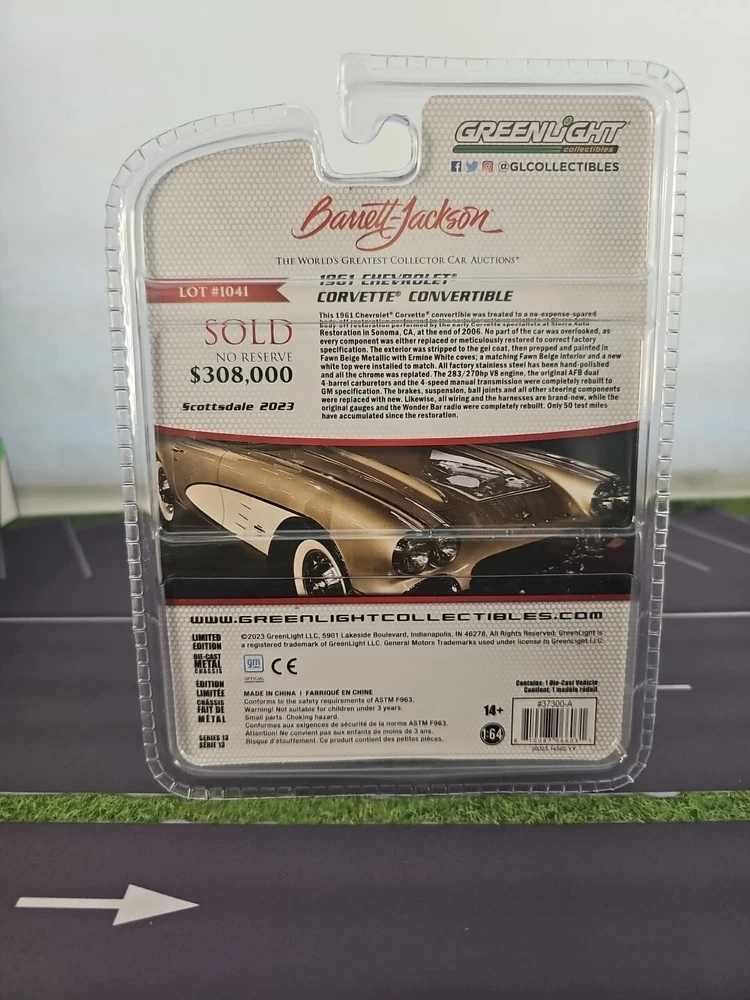 1:64 Greenlight Green Machine CHASE 1961 Chevrolet Corvette Convertible Series 13. SEE PHOTOS FOR CONDITION. Has dented front facing blister.