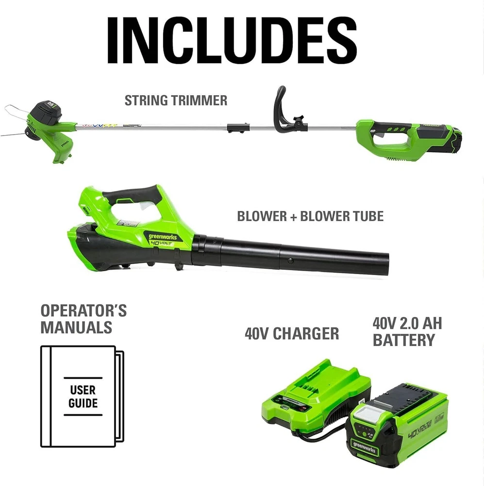 About this item [Walkway Warrior Combo] - 40V trimmer + blaster system clears overgrown edges along driveways/walkways in half the time, boosting curb appeal instantly. [Defeat Thick Brush Invasion] - 12" commercial-grade trimmer (.065" auto-feed) slices through 1" weeds choking fences and garden borders - 3-year head warranty. [Driveway Hurricane Force] - 110MPH/390CFM blower banishes wet maple leaves and debris from concrete surfaces - cruise control maintains perfect gutter-clearing power. [Universal 40V Power Hub] - 2.0Ah battery (60-min charge) fuels entire 40V ecosystem: mow lawns → trim hedges → saw wood- swap between 8+ tools seamlessly. [Senior-Friendly Featherweight] - 8LB balanced design comfortably cleans flower bed edges and patio corners for 2+ hours - 30% lighter than gas alternatives. [Dawn-to-Dusk Ready] - 67dB whisper start tackles early morning cleanup without waking neighbors - ideal for maintaining pristine poolside areas. [$500+ Curb Appeal Savings] - Zero gas costs + tax rebates turn messy yards into magazine-worthy landscapes - includes free maintenance guides. On Nov 1, 2025 at 02:28:16 PDT, seller added the following information: On Jan 31, 2026 at 01:26:18 PST, seller added the following information: