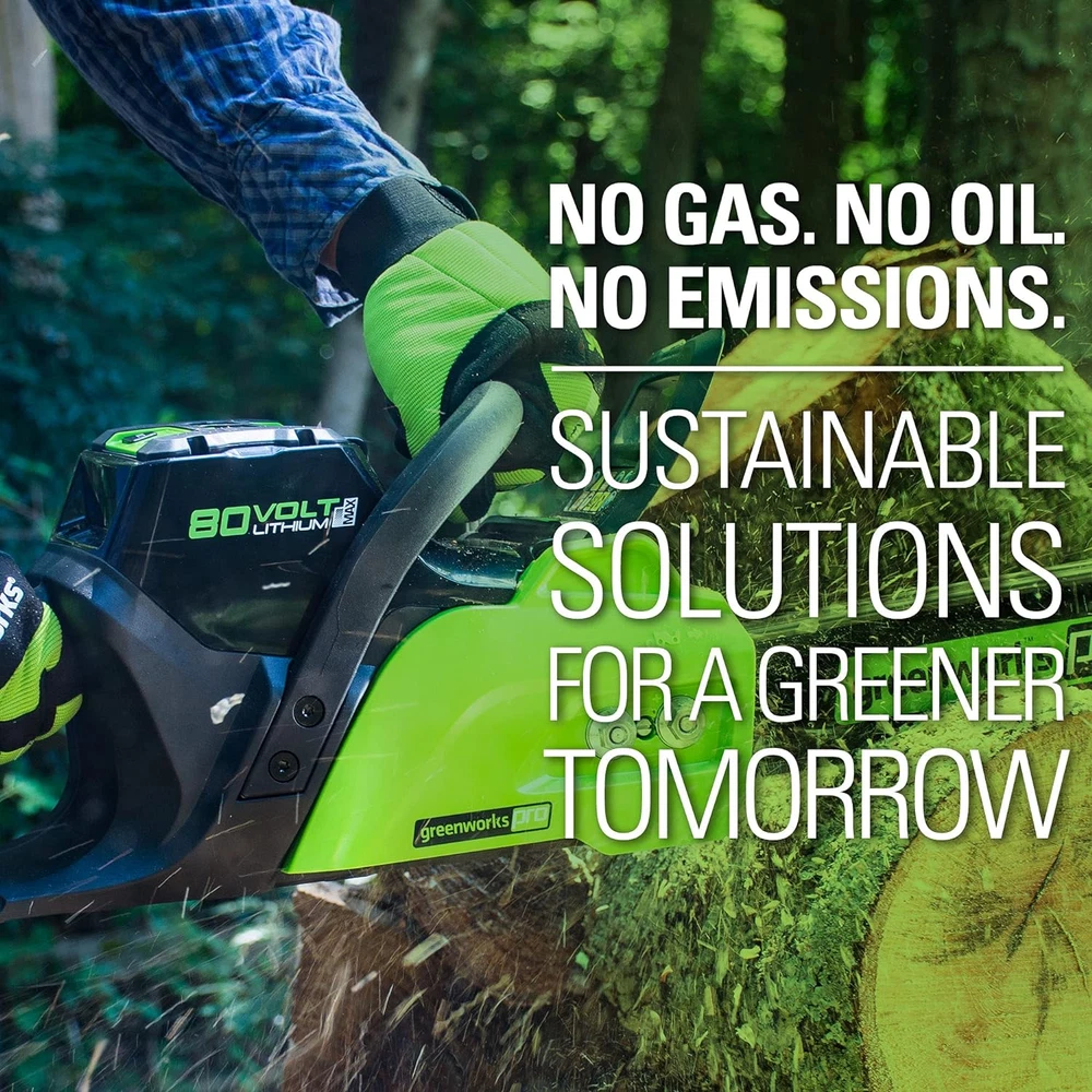 Store New Arrivals Add to Favorite View Feedback Contact Greenworks 80V 16" Brushless Cordless Chainsaw (Great for Tree Felling, Limbing, Pruning, and Firewood / 75+ Compatible Tools), 2.0Ah Battery and Charger Included Description Item model number CS80L211 Part Number CS80L211 Style 2AH Battery and Charger Product Dimensions 30.12"L x 9.7"W x 9"H Power Source Battery Powered Item Package Quantity 1 Item Weight 12.8 Pounds Pattern Chainsaw Brand Greenworks Country of Origin China Battery Cell Type Lithium Ion Global Trade Identification Number 00841821026103 Manufacturer Greenworks Batteries 1 Lithium Ion batteries required. (included) Batteries Included? Yes Batteries Required? Yes Horsepower 3.6 hp Size 16" (2.0Ah) Chain Length 16 Inches Included Components Battery and Charger MAXIMUM EFFICIENCY: Achieve up to 100 cuts on 4x4 lumber using a single charge from the included 2.0Ah battery, ensuring uninterrupted performance. VERSATILE CUTTING POWER: The 16-inch bar and chain effortlessly handle trees and limbs up to 30 inches in diameter, offering a wide range of cutting possibilities. SUPERIOR BRUSHLESS MOTOR: Benefit from enhanced torque, extended runtime, and prolonged tool life with advanced brushless motor technology, comparable to a 45CC gas chainsaw. INSTANT, HASSLE-FREE START: Experience a guaranteed start every time with no need for priming, choking, or pulling. EFFORTLESS MAINTENANCE: The pro-style side-mounted chain tensioning feature simplifies bar and chain maintenance, making upkeep a breeze. SUSTAINED LUBRICATION: The automatic oiler ensures consistent chain lubrication, promoting a longer chain life. The transparent oil window provides clear refill indications. ENHANCED SAFETY: The inertia-activated chain brake adds an extra layer of safety, stopping the chain during kickback to reduce the risk of injury. Experience effortless landscaping with the Greenworks PRO 80V Max System, the most powerful cordless battery platform for outdoor power equipment. Breeze through residential properties, corporate parks, and entertainment venues with zero gas, zero emissions, and zero maintenance. Simply press a button to unleash power that delivers less vibration, less noise, and less mess. With extra batteries, a rapid charger for quick charge times, and multi-tool compatibility, you can complete all your landscaping tasks with the power and performance of gas at a lower operating cost. Transform your work and your life with Greenworks PRO 80V Max System. ABOUT US We offer the best prices around on high quality products. Our E-store includes media such as books, movies, music and games while offering electronics, toys, sporting apparel, clothing, tools, general home, garden items and more. SHIPPING We are always working hard to ensure your package arrives as soon as possible. Please understand that some factors like weather, high postal traffic, and the performance of shipping companies are outside of our control. We offer free shipping to the lower 48 states and ship within 5 business days of payment, usually sooner. We do not accept P.O. Boxes. Please provide a physical address. For shipping outside of the continental USA, we only use eBay's Global Shipping Program.The item is shipped to KY and then sent to the rest of the world. International customers are responsible for all duties and taxes. Continue to check out in order to calculate costs for shipping the item to your country. Messages regarding eBay's Global Shipping Program MUST be directed at eBay EXCLUSIVELY. RETURNS We offer a 30-Day Return Policy on items which you are not completely satisfied with. You have the option for a full-refund or an exchange of the item. No returns are available on items shipped outside of the USA. PAYMENT We accept PayPal. CONTACT US This page content is yet to come Please ad us to your favorite seller and visit again later Thank You CUSTOMER SATISFACTION We try our very best to make sure every customer is completely satisfied. If there's a problem, message us! We're happy to help. WE ACCEPT Copyright © 2021 AutoDS. | All Rights Reserved