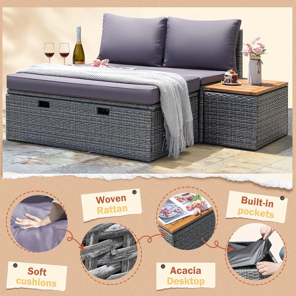 Store New Arrivals Add to Favorite View Feedback Contact Greesum Patio Furniture Set Multifunctional Outdoor Sectional Sofa Rattan Chaise Lounge Wicker Daybed with Couch, Cushions, Storage Ottoman and 2 Side Tables for Backyard Porch Poolside Lawn, Gray Description Item dimensions L x W x H 48 x 43.6 x 26.7 inches Brand Name Greesum Item Dimensions 48 x 43.6 x 26.7 inches Color Grey Material Type Rattan Brand Greesum Item Depth 48 inches Required Assembly Yes Item Weight 79 Pounds Assembly Required Yes Shape Rectangular Shape Rectangular Item Weight 79 Pounds Style Rattan Wicker Outdoor Furniture Set Style Name Rattan Wicker Outdoor Furniture Set Product Care Instructions Wipe with Wicker Manufacturer Greesum 60% Cotton, 40% Polyester [Convenient Storage]- Unique storage and coffee table function in one, giving you space to store extra pillows or personal items. The coffee table can not only be used as a sleeper sofa but can also be stored under the ottoman to save space. [High-Quality]- The Wicker Lover's Chair Set is made of all-weather rattan and a sturdy steel frame to ensure longevity. Each seat can support up to 330 lbs. Filled with highly resilient foam, the cushions are waterproof. They can be removed when it rains. [Comfort]- The wide and deep conversation set offers relaxation for 2 people. The thick elasticated cushion is comfortable and is a good sitting height. Sit down with your feet up after a busy day, forget about fatigue and enjoy your leisure time completely. [Suitable for Any Setting]- With gray wicker and different coloured cushions for a natural look, this decorative set is the perfect addition to small balconies, decks, backyards, porches, poolsides and any other indoor or outdoor decor. [Quick Assembly] - package includes:1 x bench: 24.4" D x 43.7" W x 26.4" H, 1 x coffee table: 23.6" D x 41.3" W x 12.6" H, 2 x deck boxes: 13.7" D x 21.6" W x 13.7", 2 x seat cushions and 2 x pillows. Assembly is easy with the included clear instructions and necessary hardware. Greesum 4 Piece Outdoor Patio Furniture Sets Specification: Cushion Color: Gray Material: Rattan, Wicker Weight Capacity: 330 lbs Package includes: 1 x Bench: 24.4" D x 43.7" W x 26.4" H 1 x Coffee Table: 23.6" (L) x 41.3" (W)x 12.6" (H) 2 x Deck Boxes: 13.7" (L) x 21.6" (W)x 13.7"(H) 2 x Seat Cushions & 2 x Pillows Package Dimensions:45"(L) x 28"(W) x 12"(H) Package Weight:79 lbs Notice: There may be some differences between photos and items in term of color because the influence of lighting during the shooting or the settings of the computers’ display screen. ABOUT US We offer the best prices around on high quality products. Our E-store includes media such as books, movies, music and games while offering electronics, toys, sporting apparel, clothing, tools, general home, garden items and more. SHIPPING We are always working hard to ensure your package arrives as soon as possible. Please understand that some factors like weather, high postal traffic, and the performance of shipping companies are outside of our control. For shipping outside of the continental USA, we only use eBay's Global Shipping Program.The item is shipped to KY and then sent to the rest of the world. International customers are responsible for all duties and taxes. Continue to check out in order to calculate costs for shipping the item to your country. Messages regarding eBay's Global Shipping Program MUST be directed at eBay EXCLUSIVELY. RETURNS We offer a 30-Day Return Policy on items which you are not completely satisfied with. You have the option for a full-refund or an exchange of the item. No returns are available on items shipped outside of the USA. PAYMENT We accept PayPal. CONTACT US This page content is yet to come Please ad us to your favorite seller and visit again later Thank You CUSTOMER SATISFACTION We try our very best to make sure every customer is completely satisfied. If there's a problem, message us! We're happy to help. WE ACCEPT Copyright © 2021 AutoDS. | All Rights Reserved