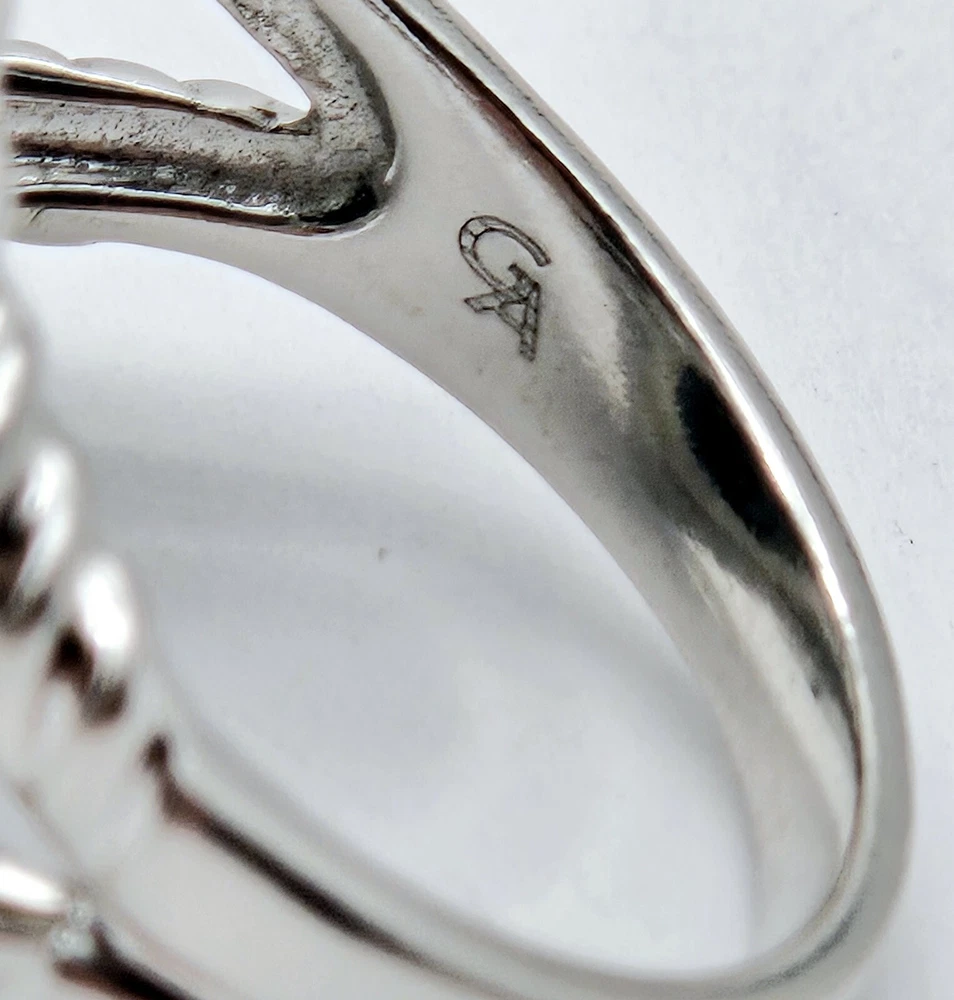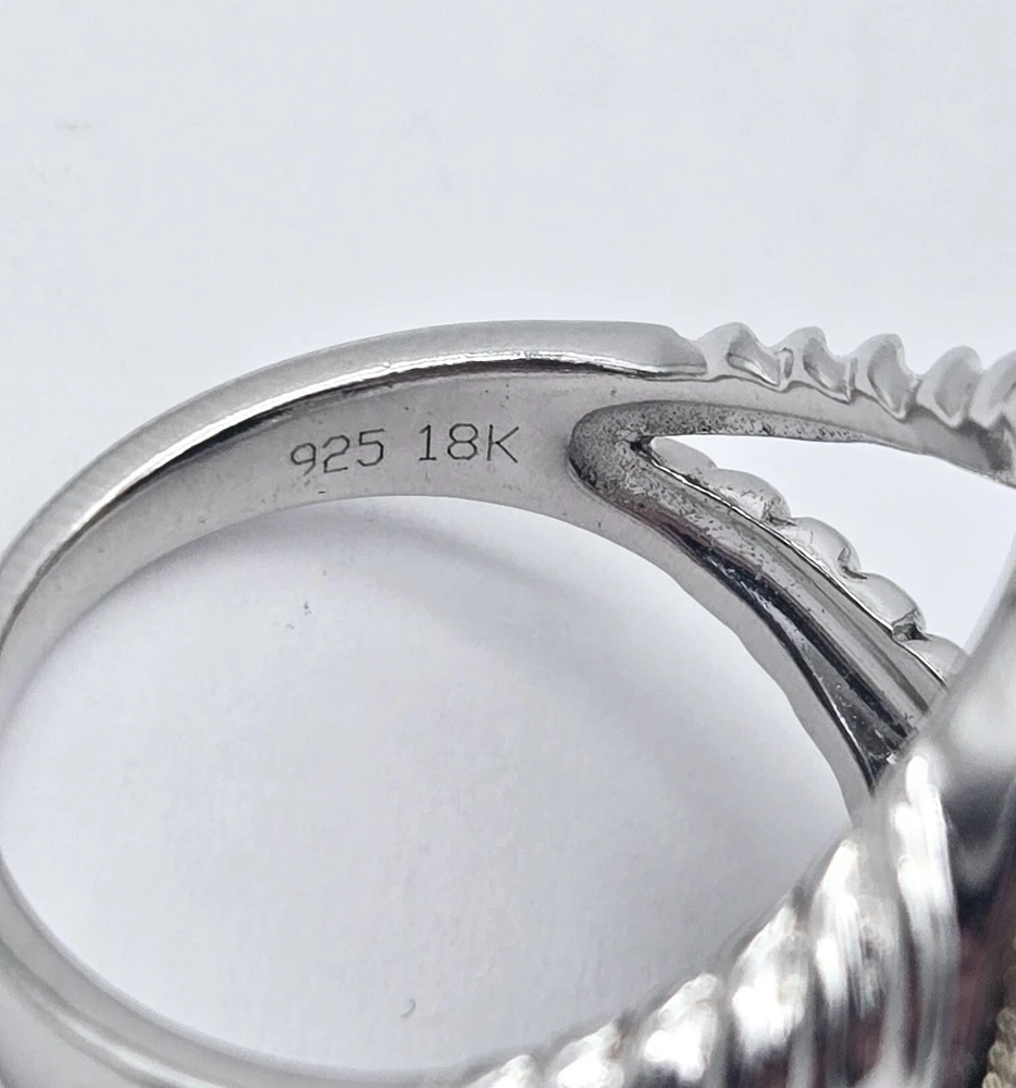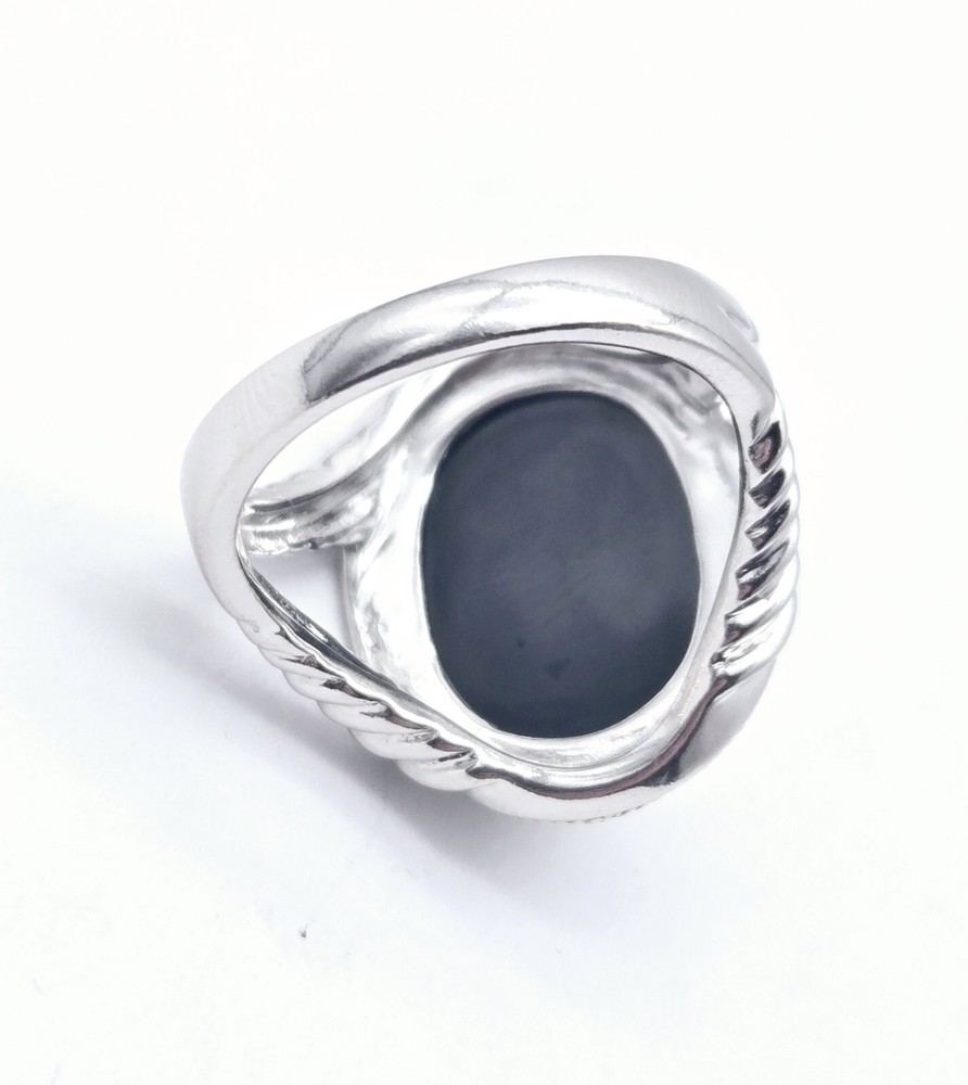 Shape:SquareSigned:YesGender:FemaleGemstone Clarity Grade:Eye CleanMetal Purity:925Ring Size:8Style:CocktailSetting Style:BezelMain Stone Creation:NaturalNumber of Gemstones:1Theme:Art, BeautyBrand:Greg AnthonyMaterial:GemstoneMetal:Sterling SilverColor:Silver, GoldType:RingVintage:YesCountry of Origin:USACountry/Region of Manufacture:United StatesMain Stone Shape:OvalMain Stone:OnyxMain Stone Color:Blue