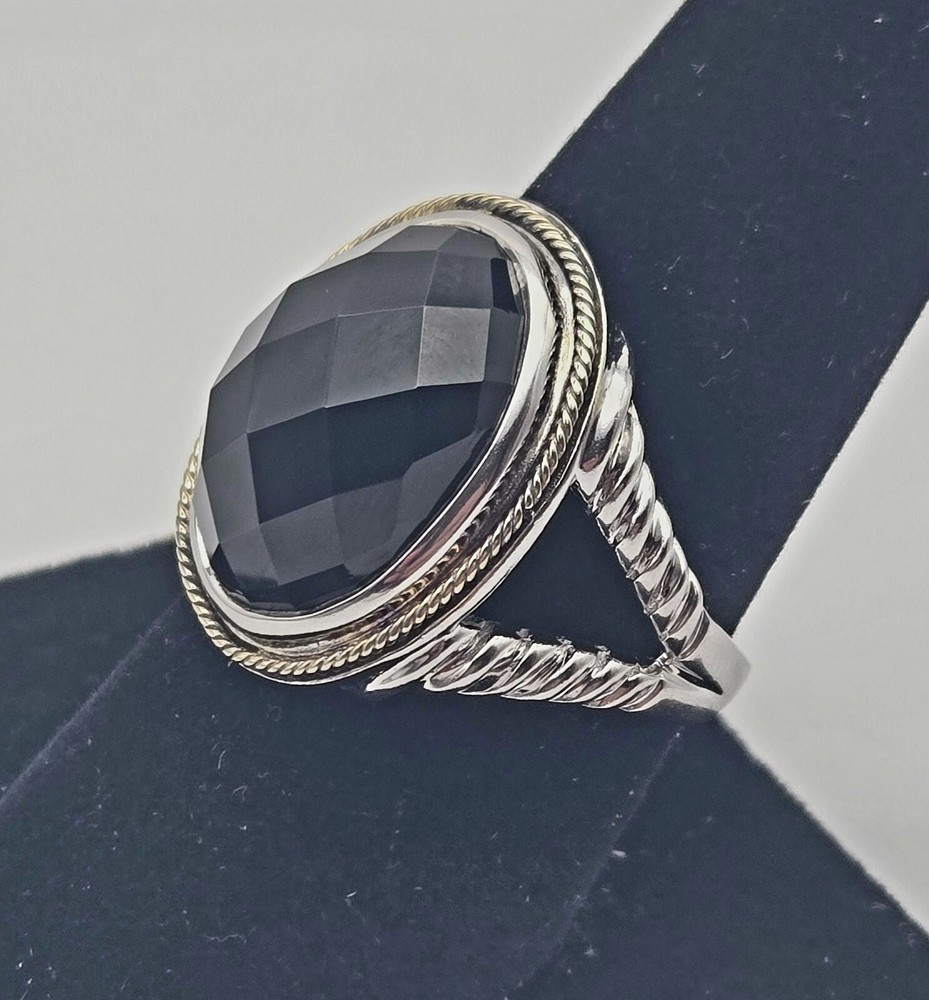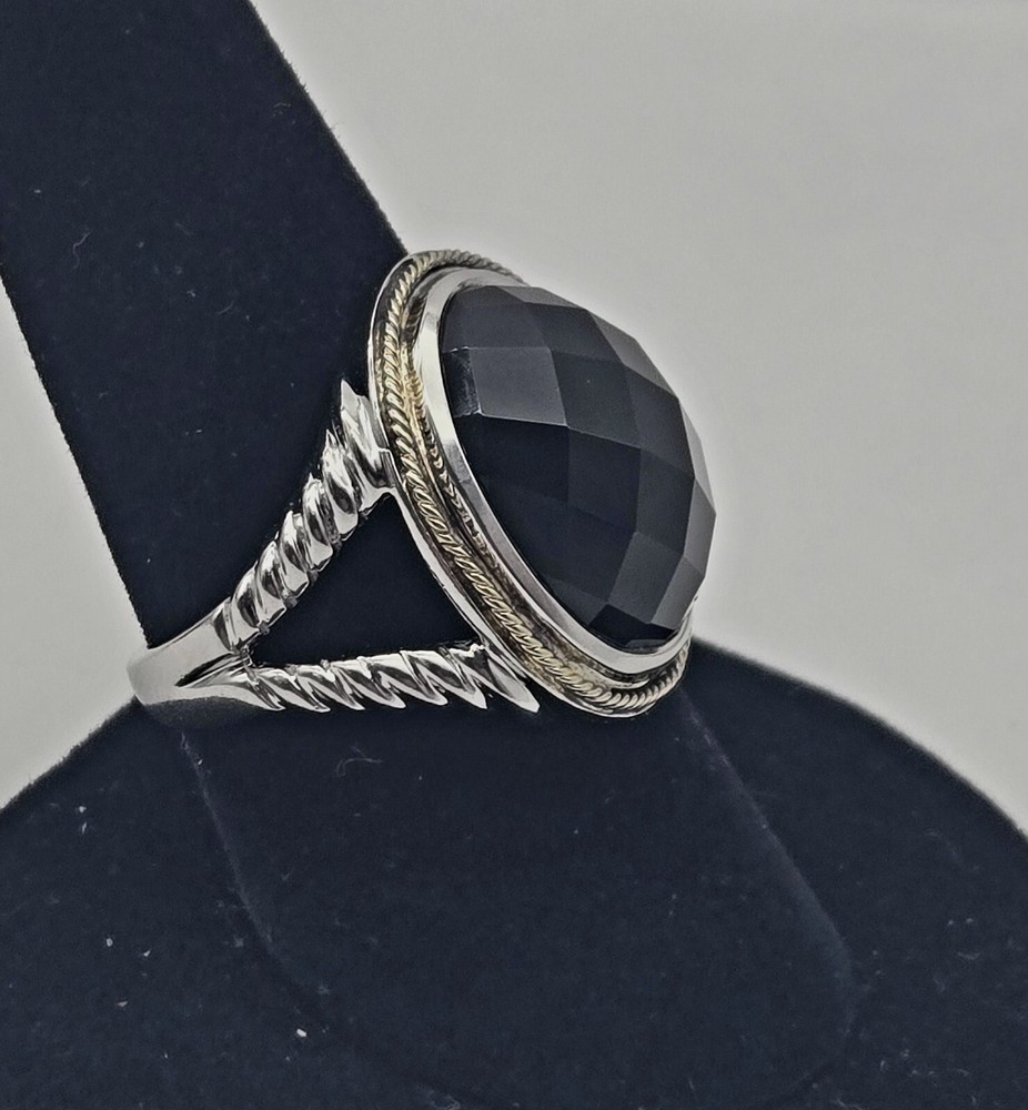 HomeGreg Anthony Byzantine Faceted Onyx Sterling Silver & 18K Gold Ring Size 8