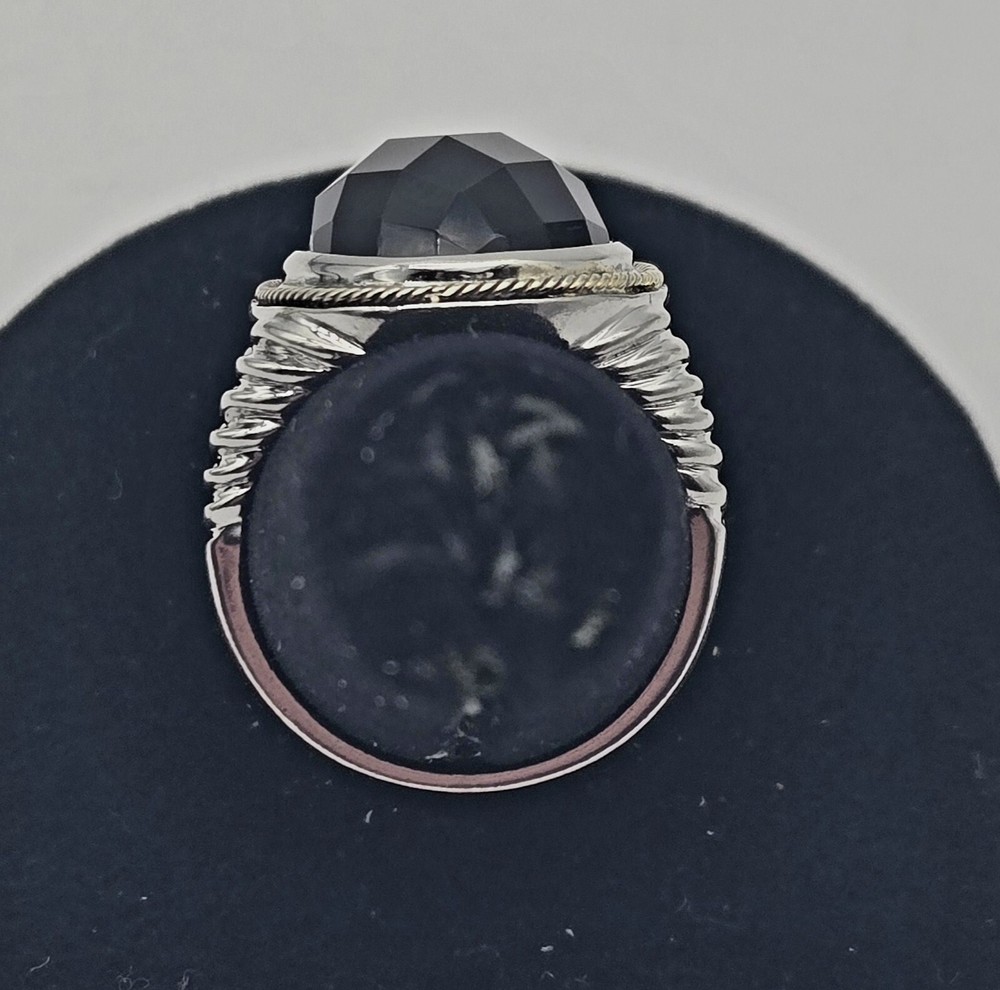 Greg Anthony Byzantine Faceted Onyx Sterling Silver & 18K Gold Ring Size 8
